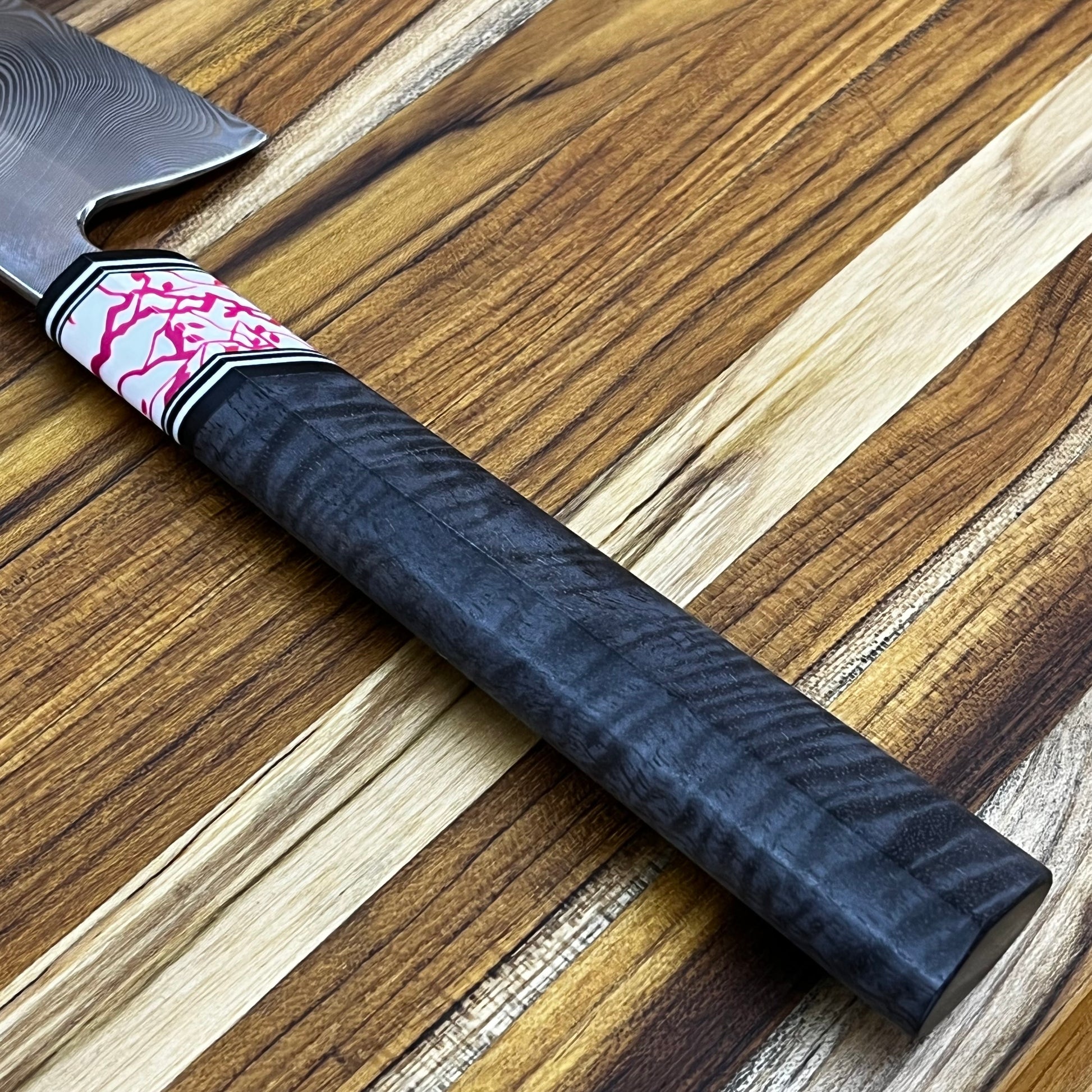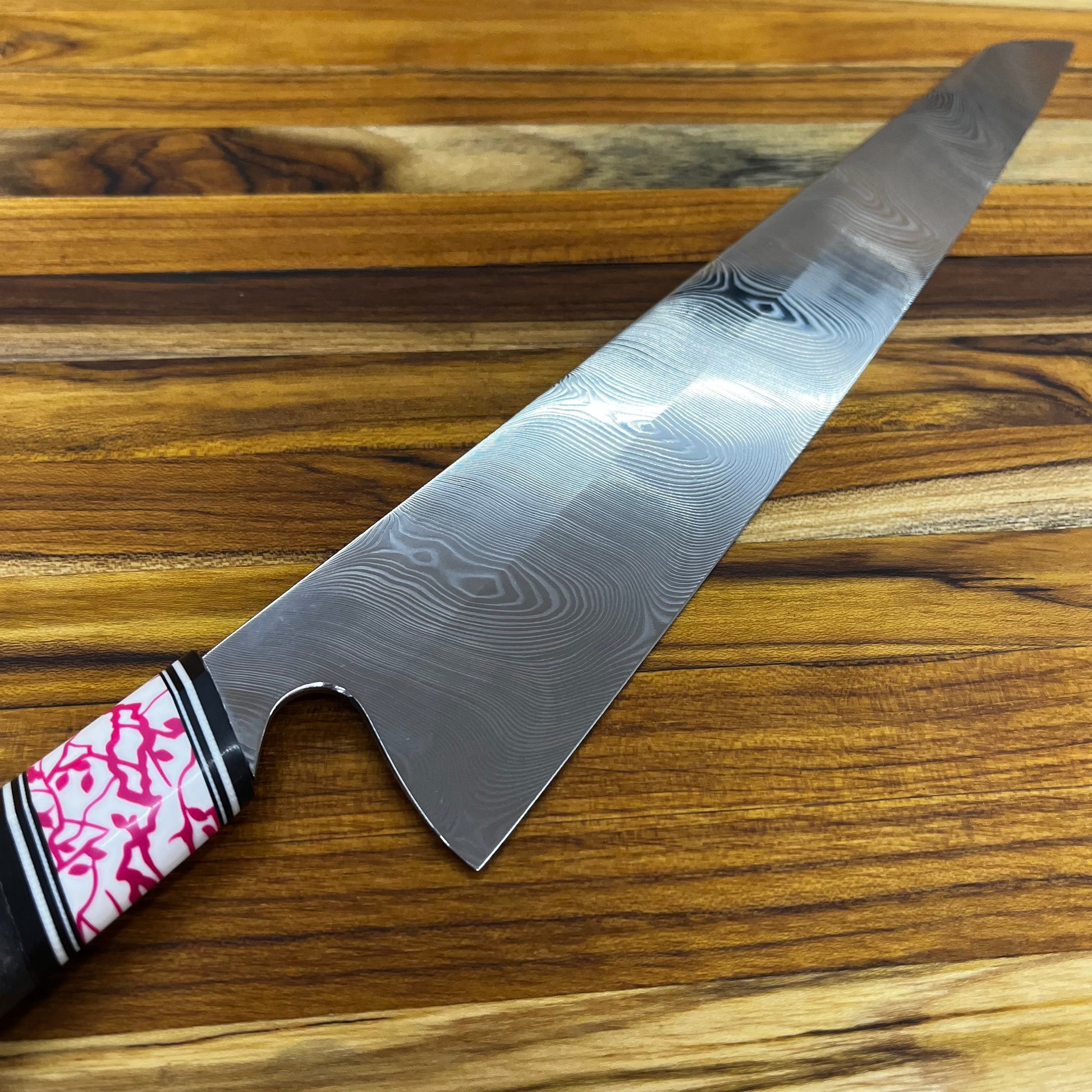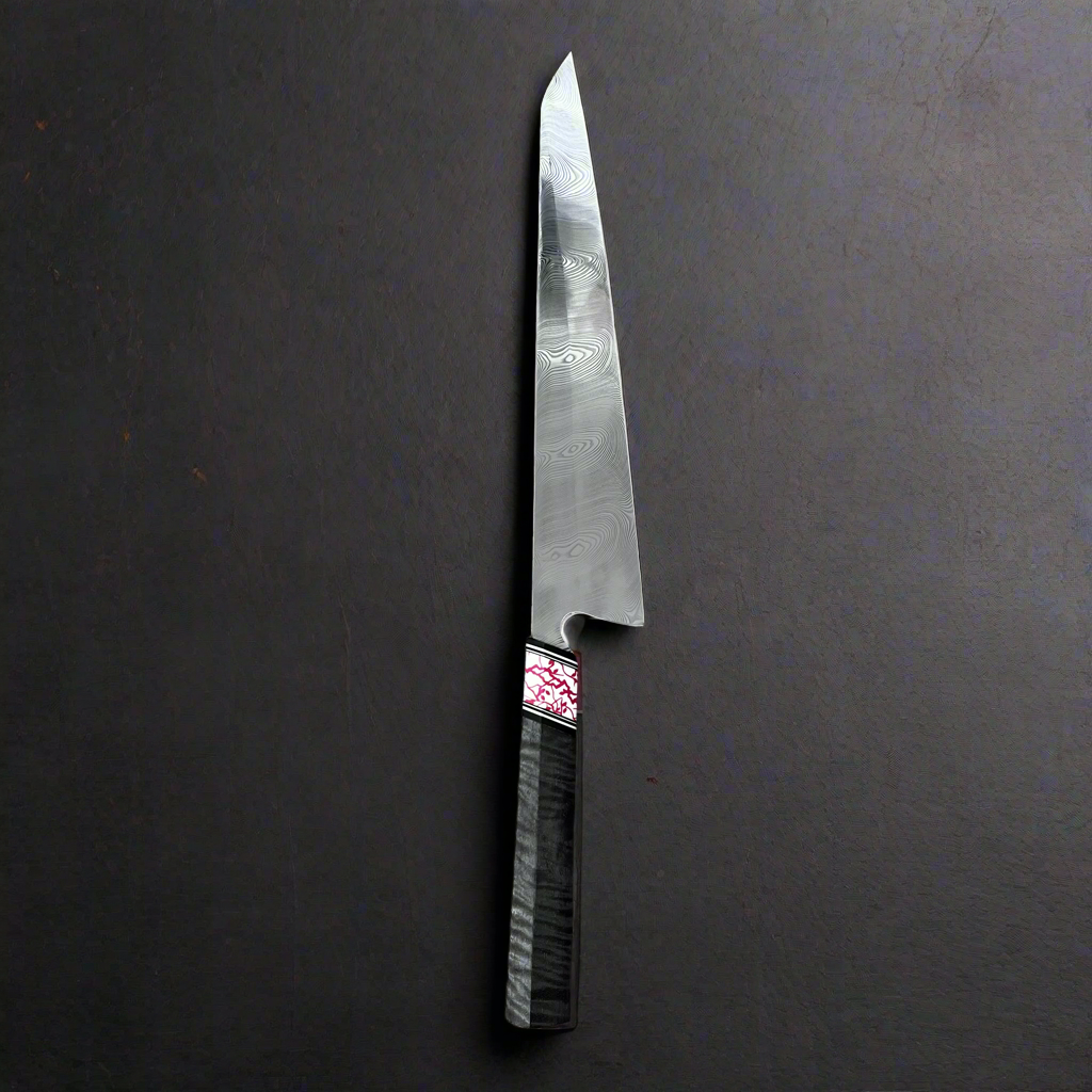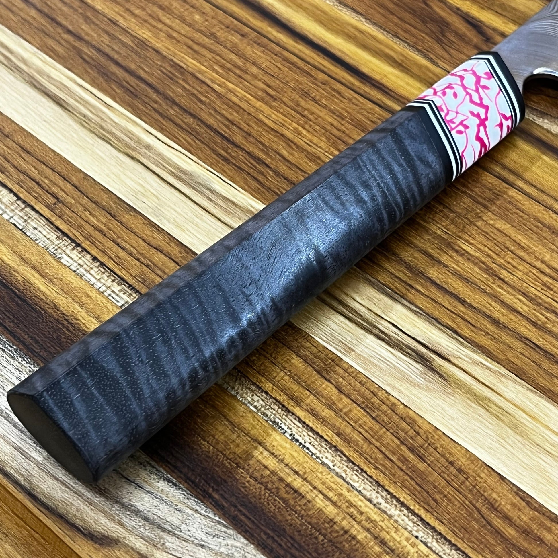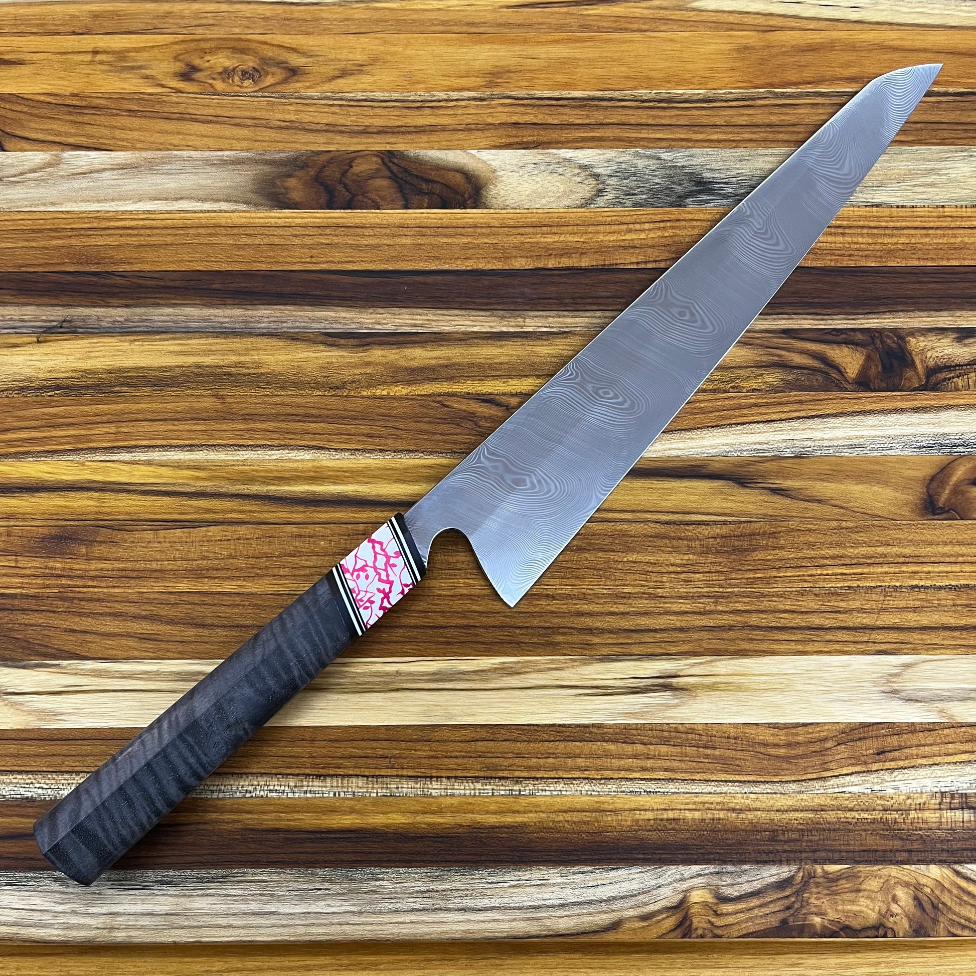 3rd Hill Customs Damasteel 280mm (11") Sujihiki w/ Black Curly Mango Handle