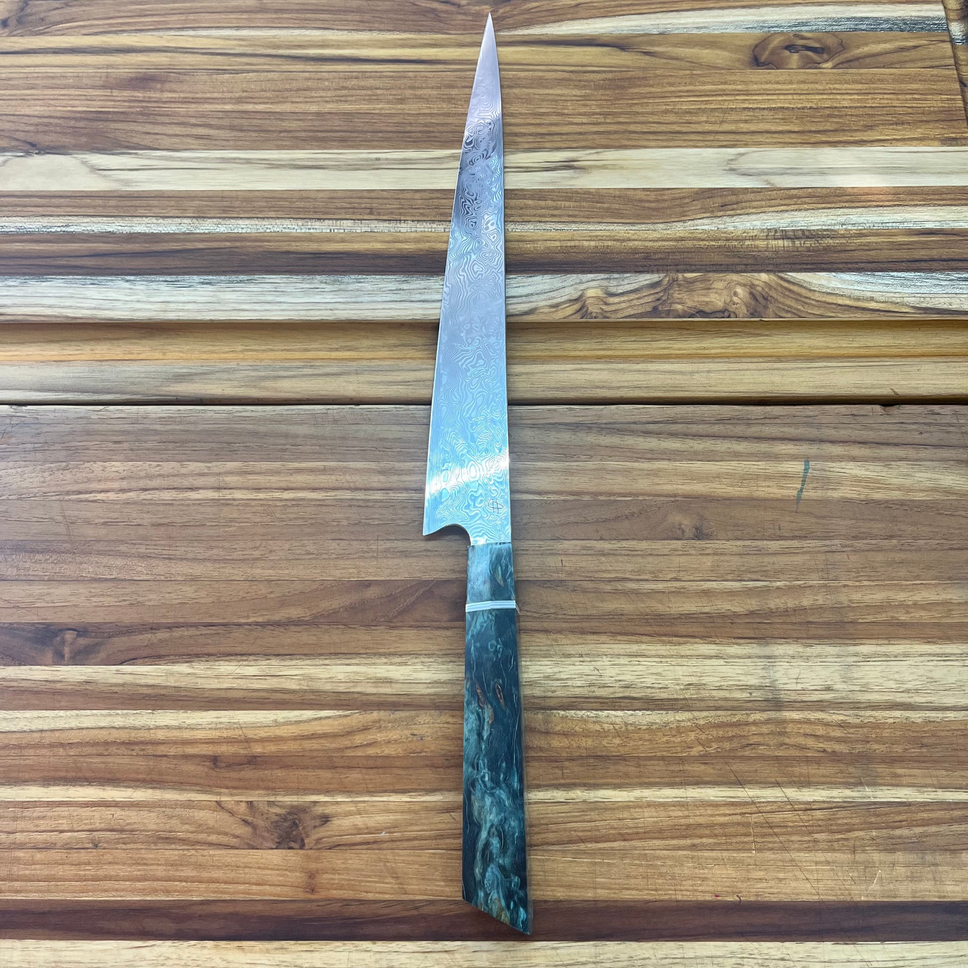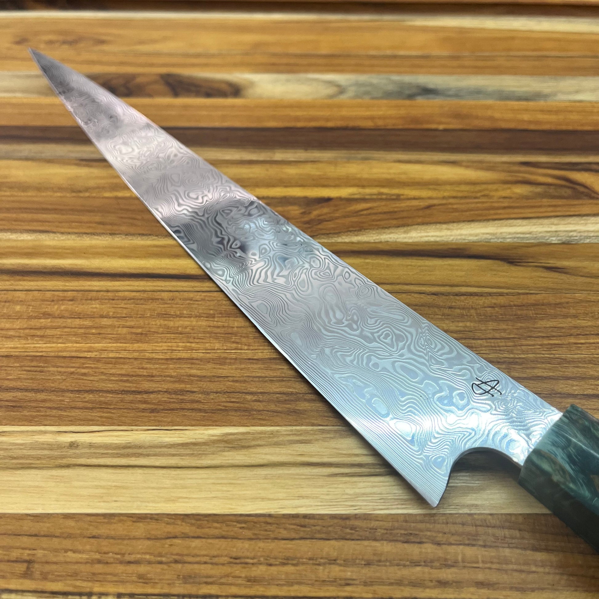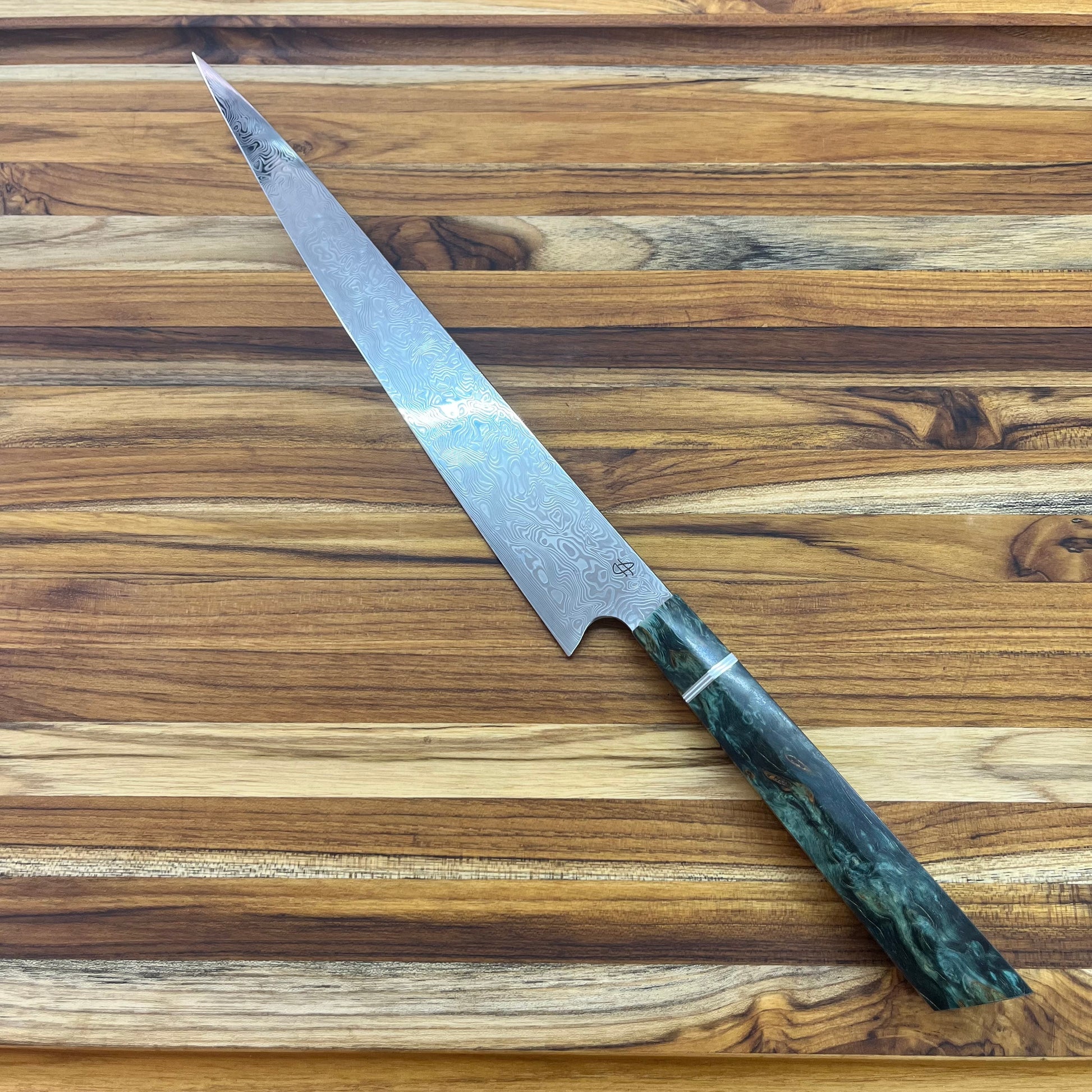 Alfredo Faccipieri 300mm (11.75") Sujihiki w/ Damasteel & Green Birchwood Handle