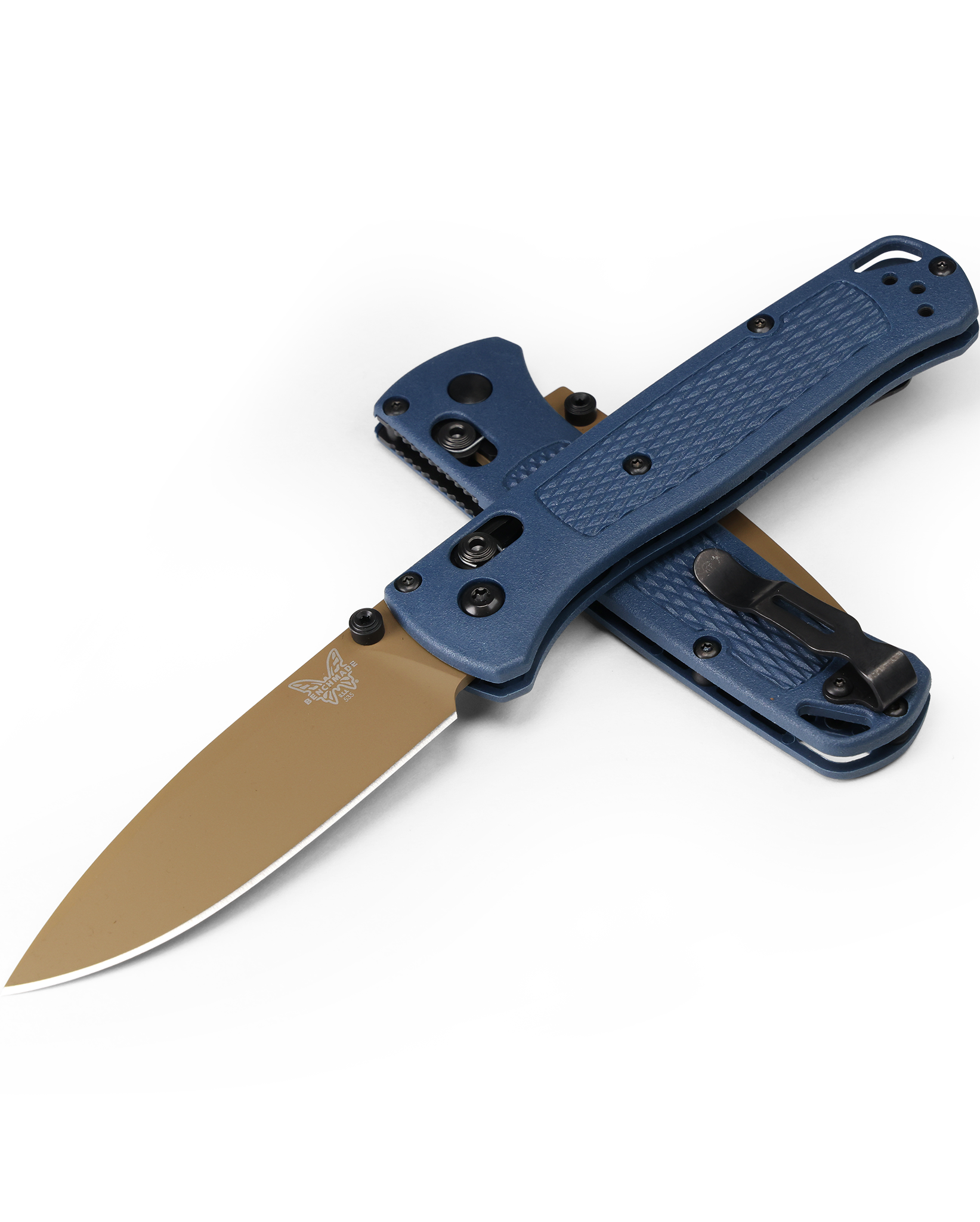 The Benchmade Bugout is an incredibly popular knife among the EDC community, and for good reason. Its durability and lightweight design make it a must-have for outdoor adventurers, but it's also perfect for everyday use. Featuring a CPM-S30V drop-point blade, maintenance is a breeze. To complete its sleek and eye-catching look, the handle is made of Crater Blue Grivory, evoking the depths of the sea, and complemented by a Flat Dark Earth Cerakote blade finish.