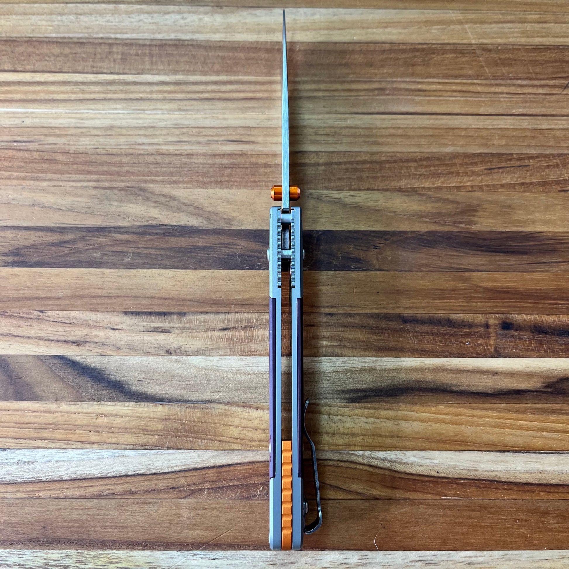 The Benchmade Bugout 535-09 stands out from other knives with its unique mix of materials. Designed with inspiration from the natural tones often found in outdoor equipment, this premium knife boasts a handle featuring an anodized 6061-T6 aluminum bolster and a Redstone Richlite onlay, complemented by pops of color from the orange anodized thumb stud and backspacer. Its CPM-S90V stainless steel stonewash polished blade provides exceptional durability, making it the perfect everyday carry for any outdoor excursion, whether it be a mountain hike or daily tasks.