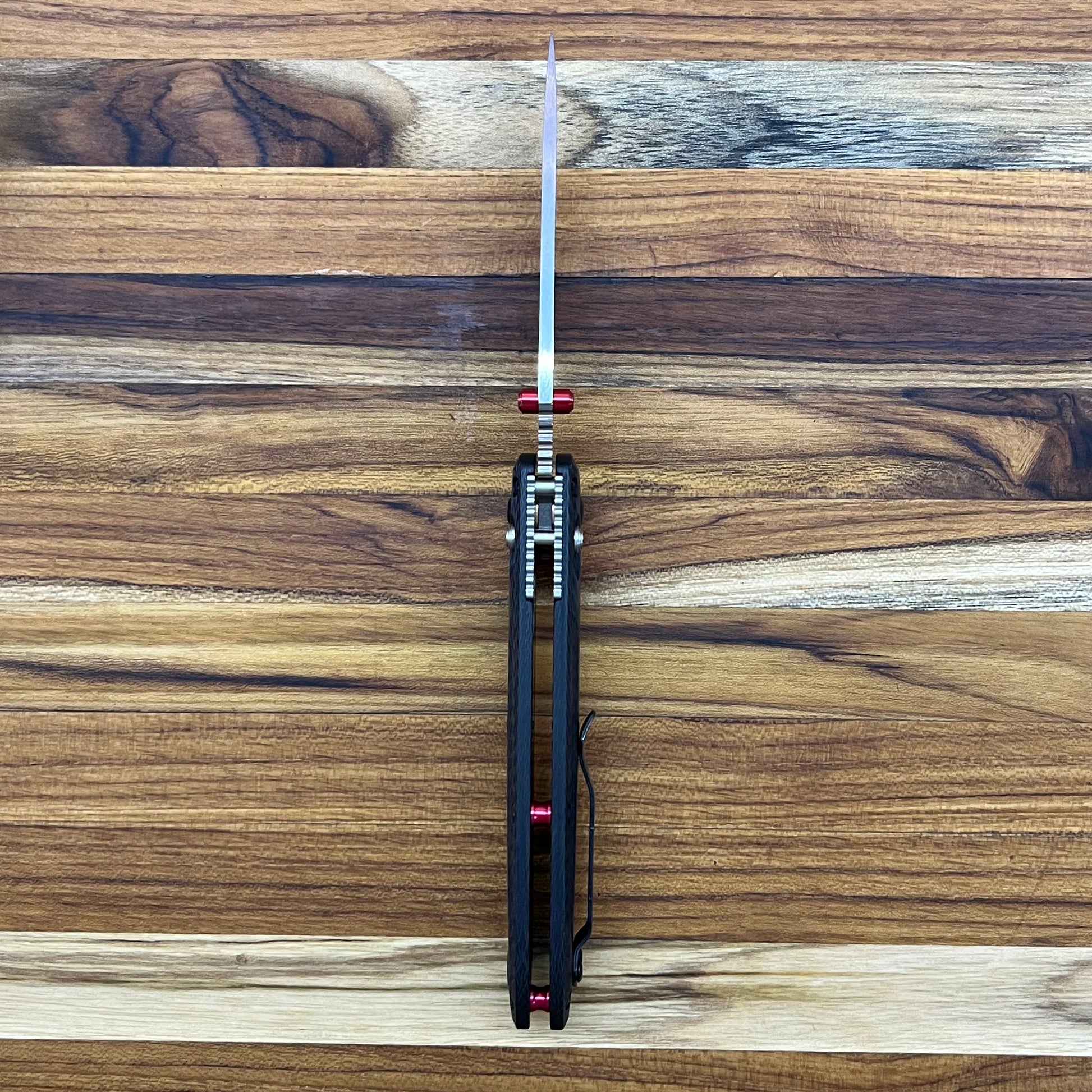 The Freek has been a favorite among knife aficionados for its blend of high-quality materials, exceptional ergonomics, and striking design. Building on the compact 565-1 Mini Freek, the 560-03 Freek enhances performance with a carbon fiber handle, a premium CPM-S90V blade, and bold red accents. Designed to handle larger hands and tougher tasks, it perfectly balances form and function for discerning users.
