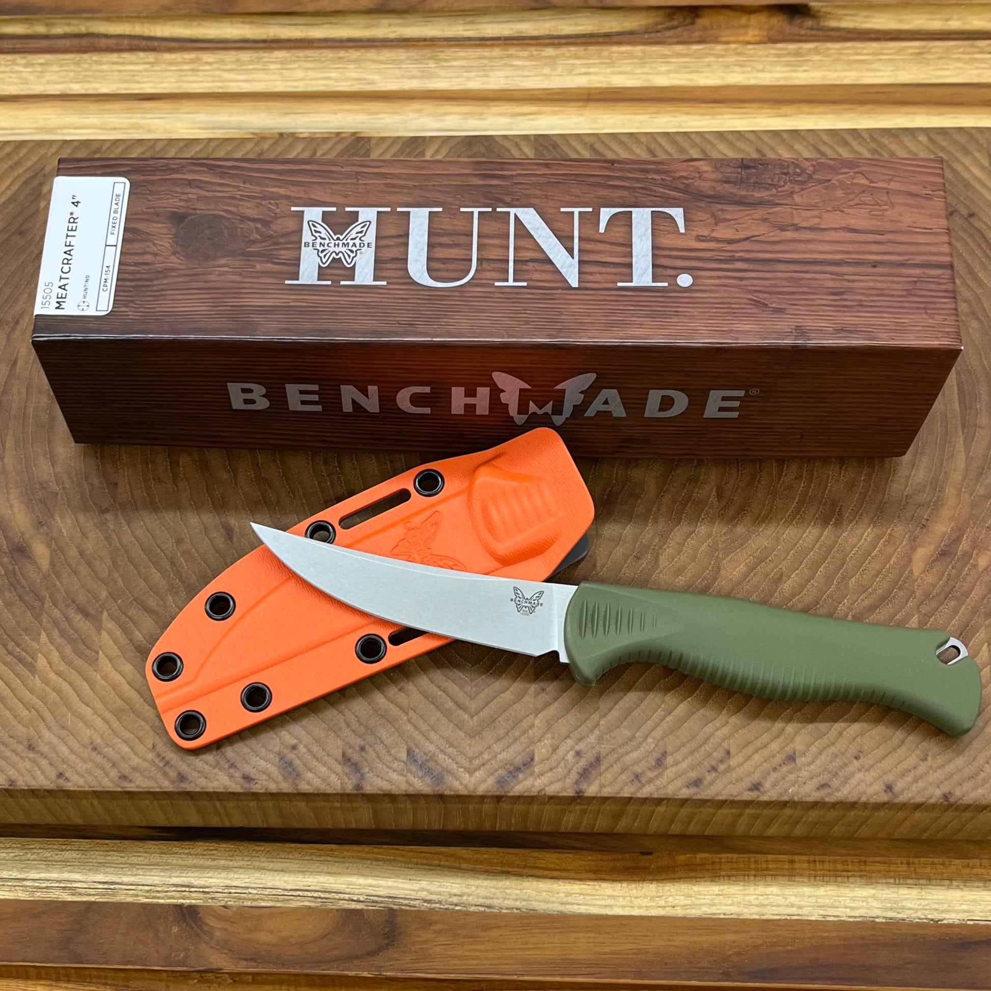 Benchmade Meatcrafter 4" Fixed Hunting Knife w/ Baltaron Sheath & Dark Olive Handle