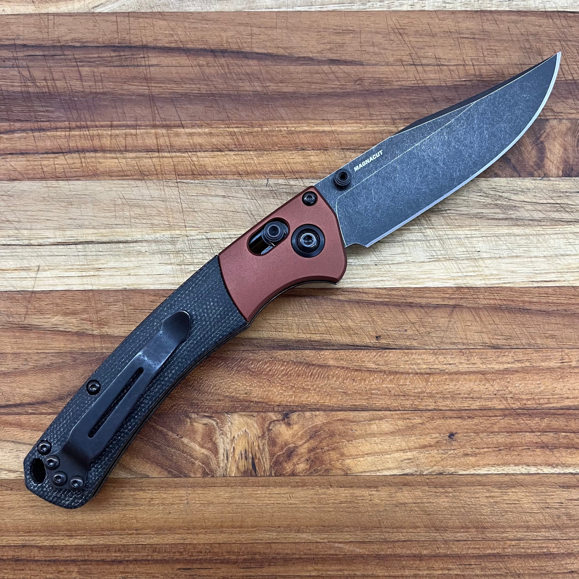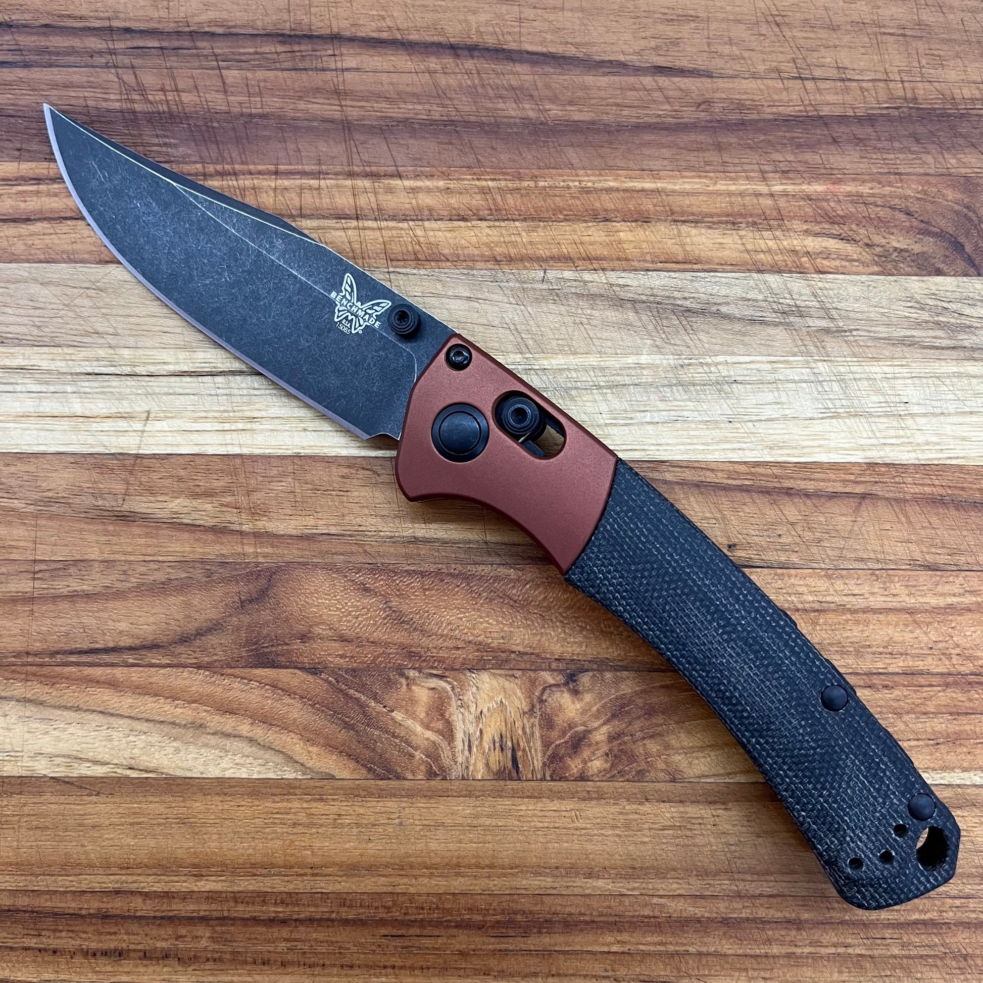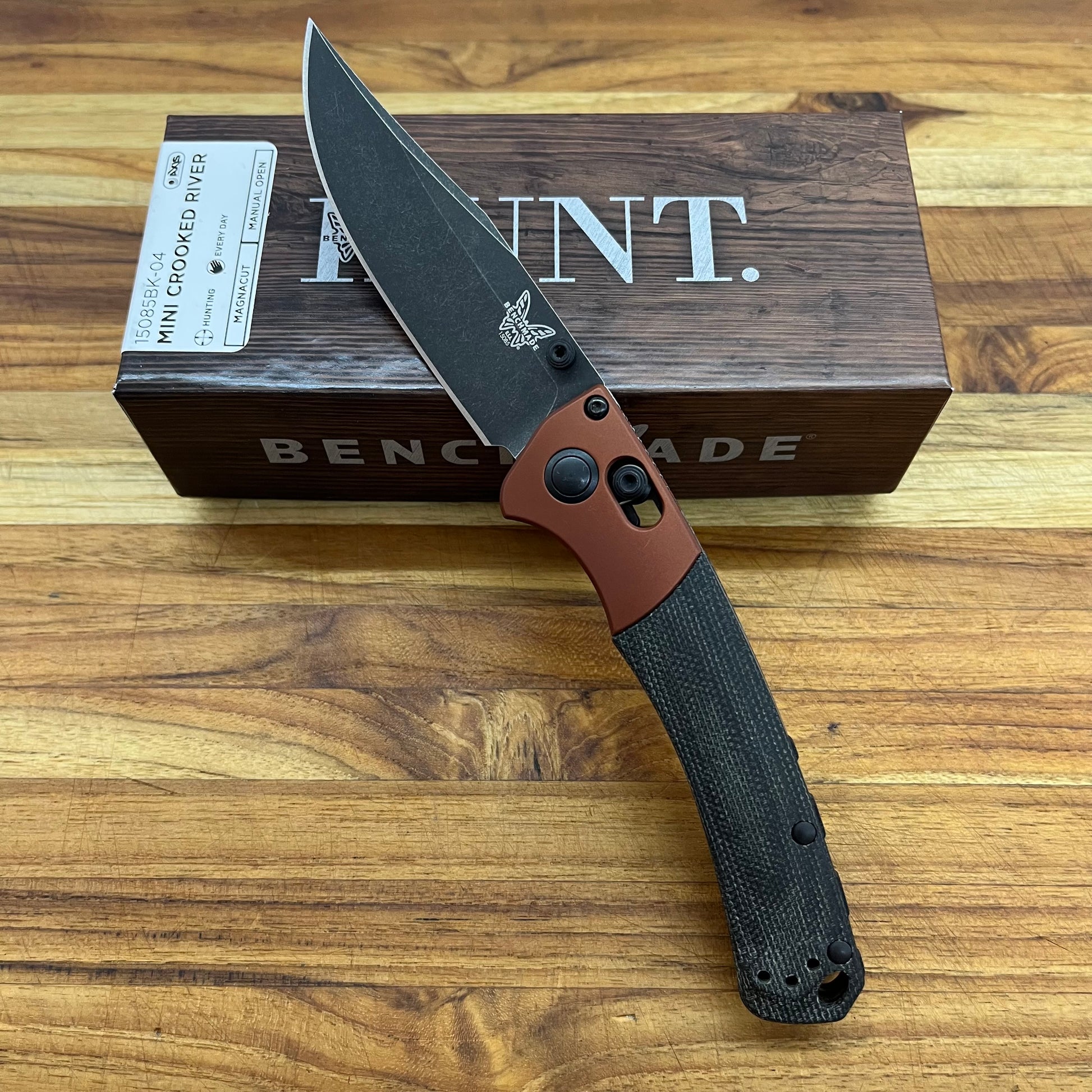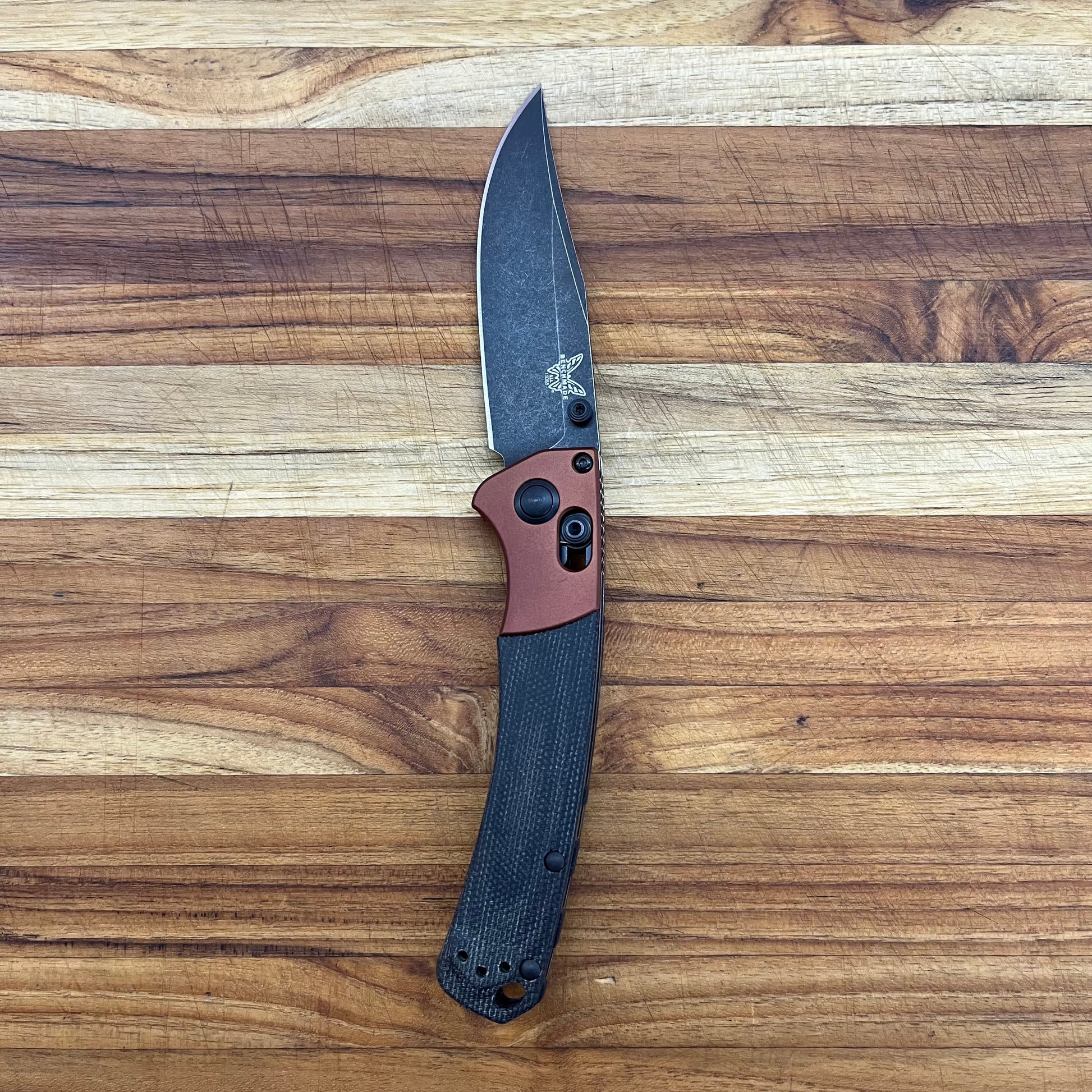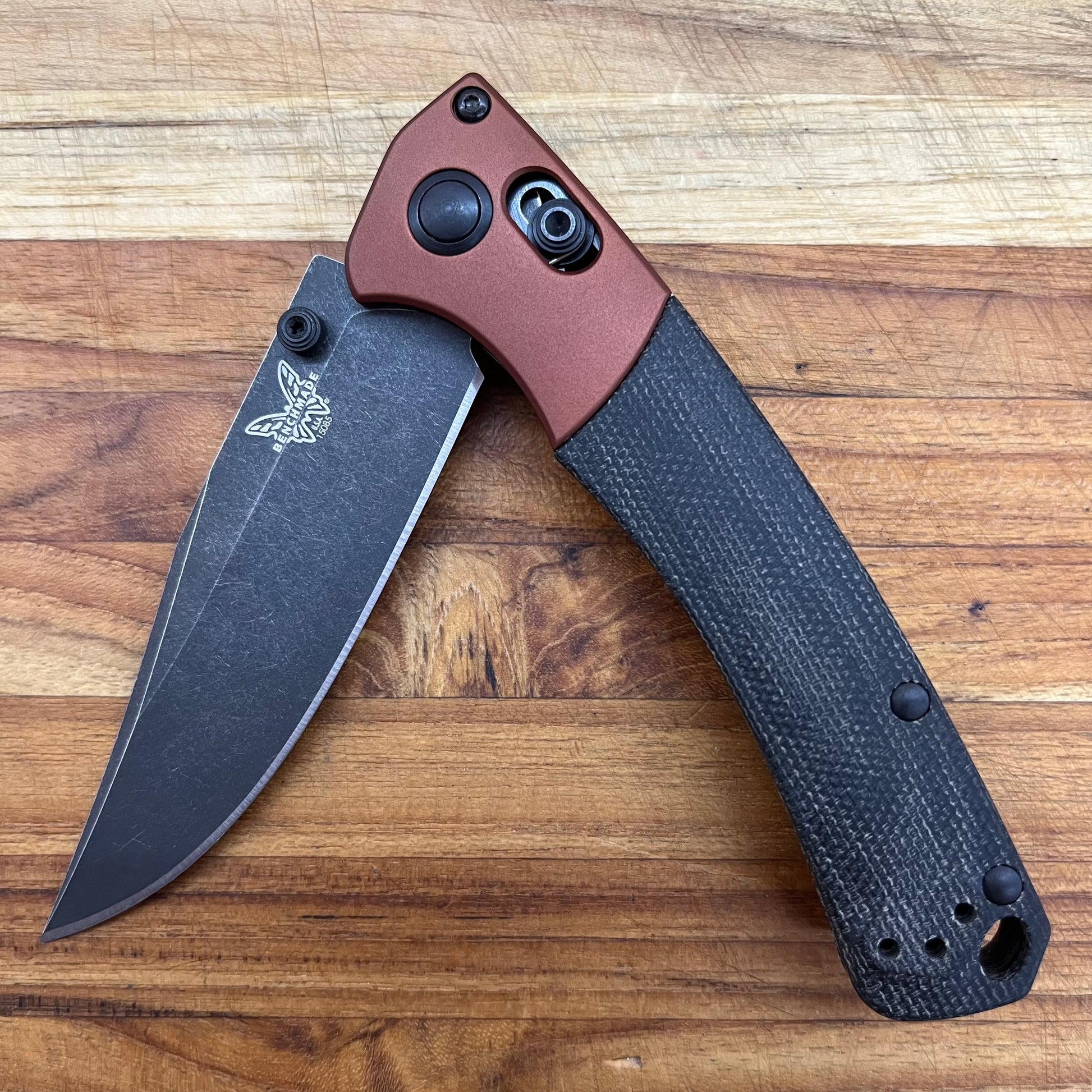 Benchmade Mini Crooked River 3.5" Folding Knife w/ Burnt Copper Aluminum & Black Canvas Micarta Handle