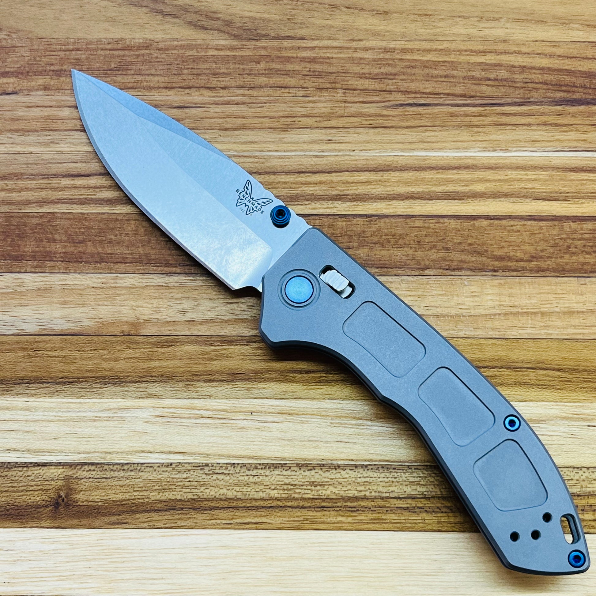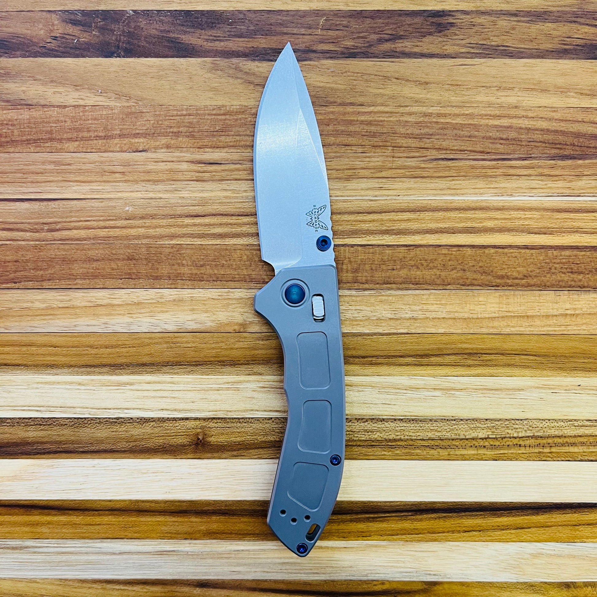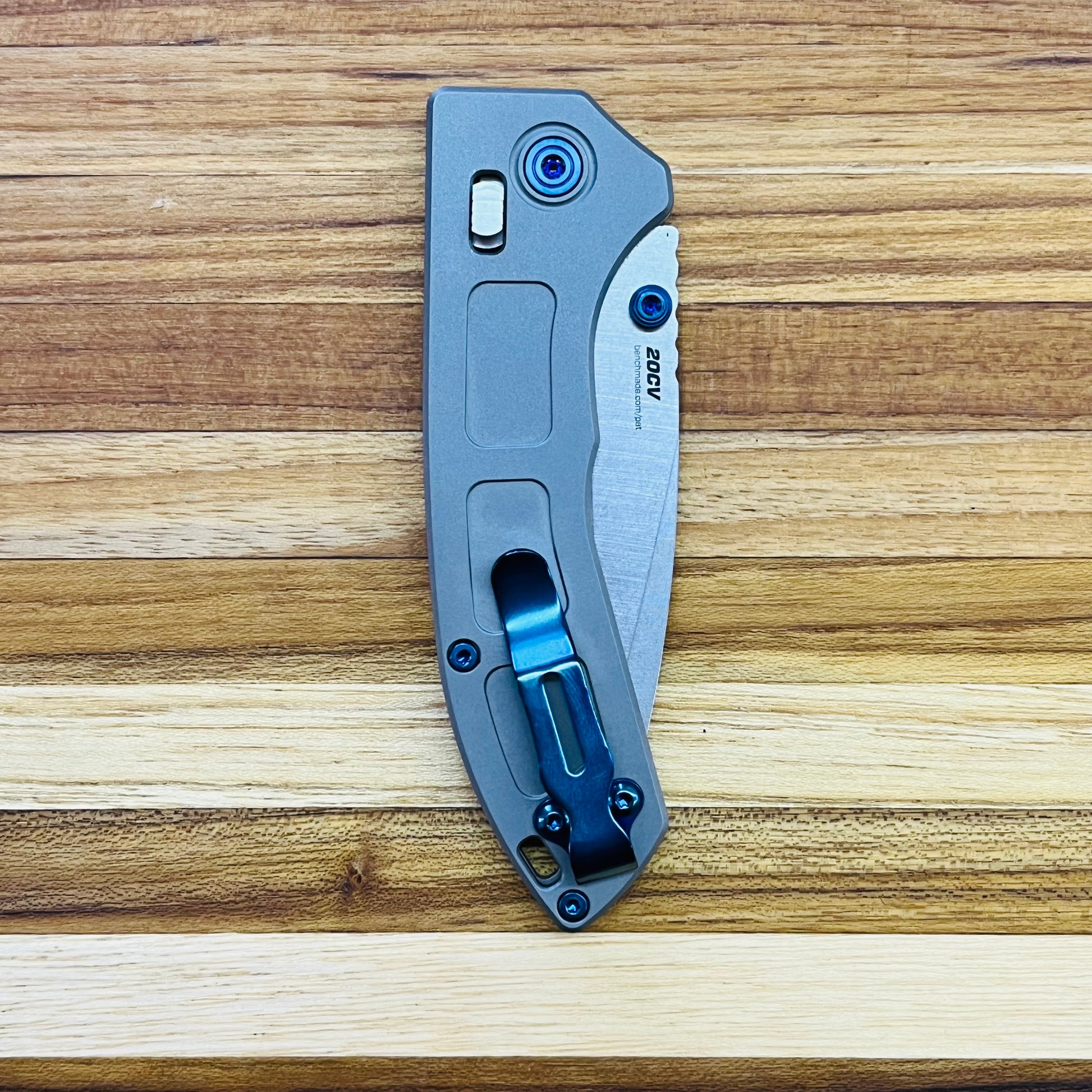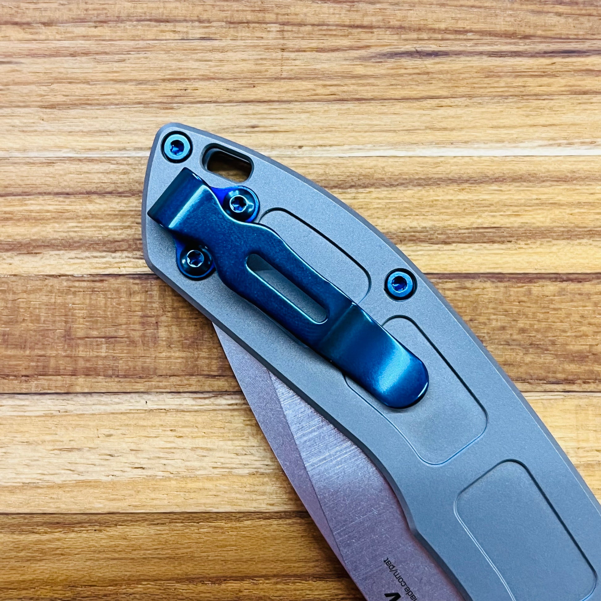 Benchmade Mini Narrows 3" Folding Knife w/ Gray Titanium Handle & Sapphire Blue Hardware