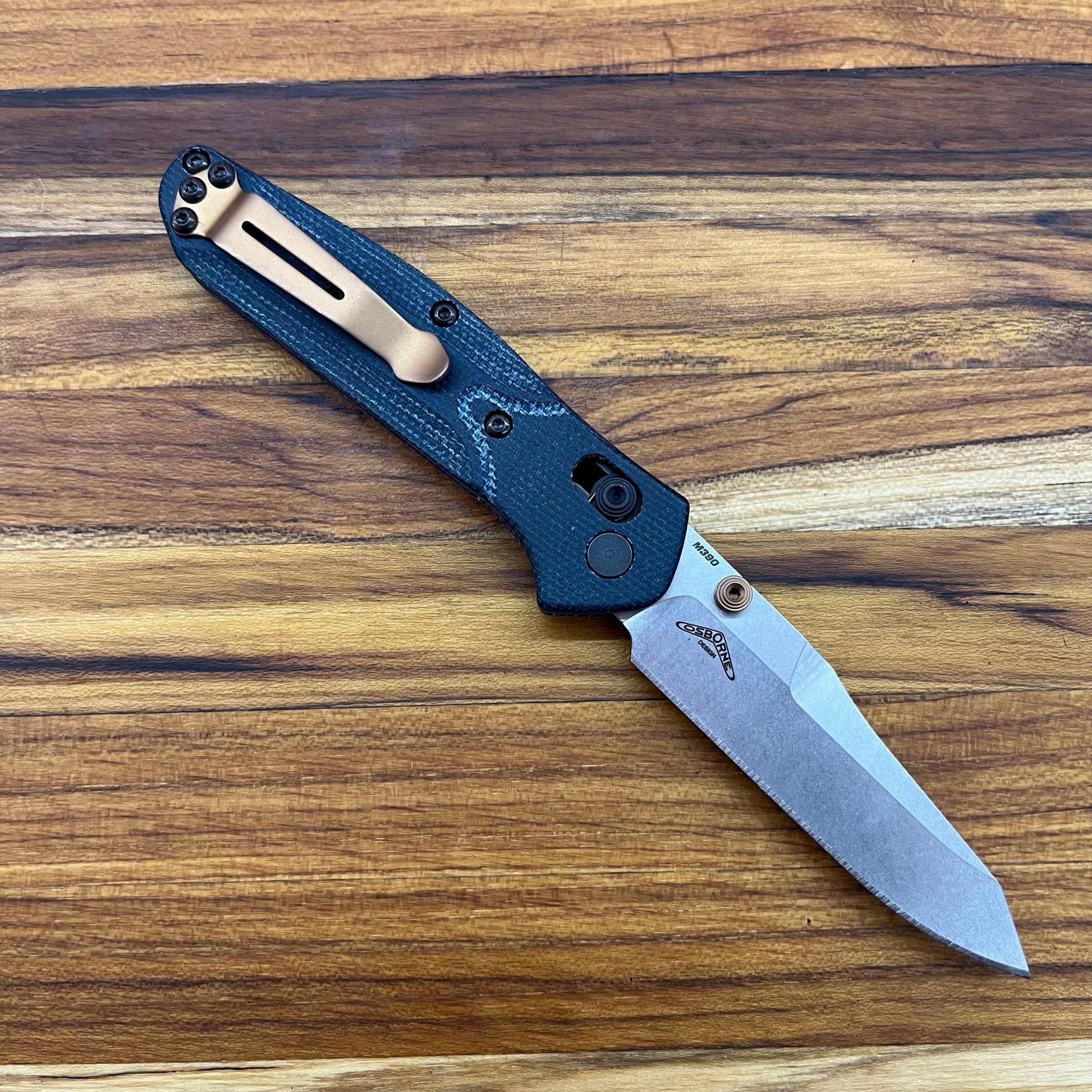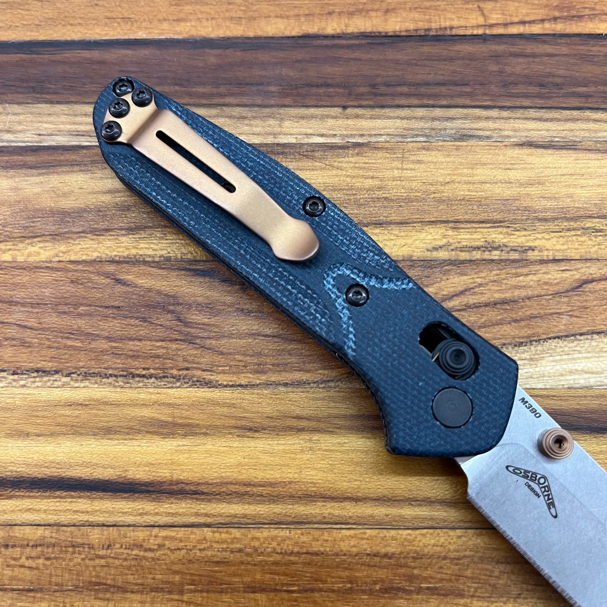 The Benchmade Mini Osborne 3" Folding Knife with Blue Denim Micarta handle offers a compact take on the iconic Osborne design. Responding to strong fan demand, the 945-04 model upgrades with durable blue denim micarta scales and high-performance Bohler M390 steel. Accented by elegant dark copper barrel spacers, this refined knife appeals to both seasoned collectors and newcomers alike.