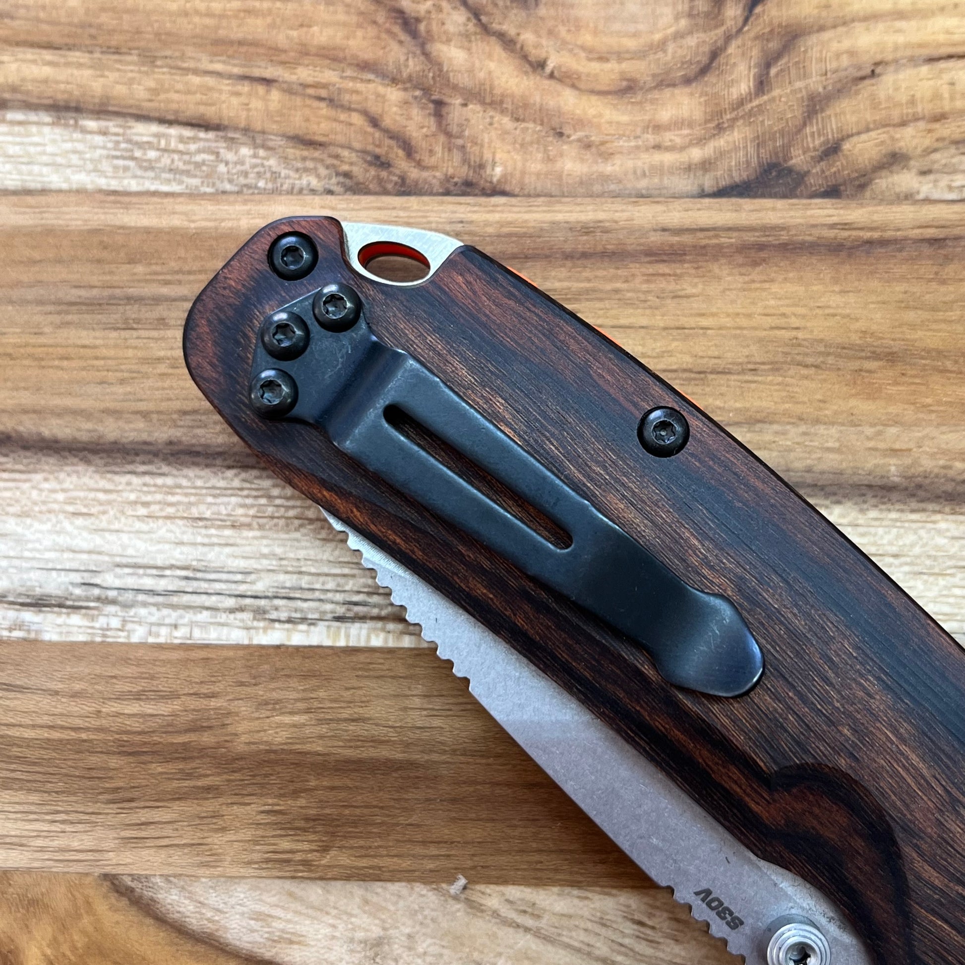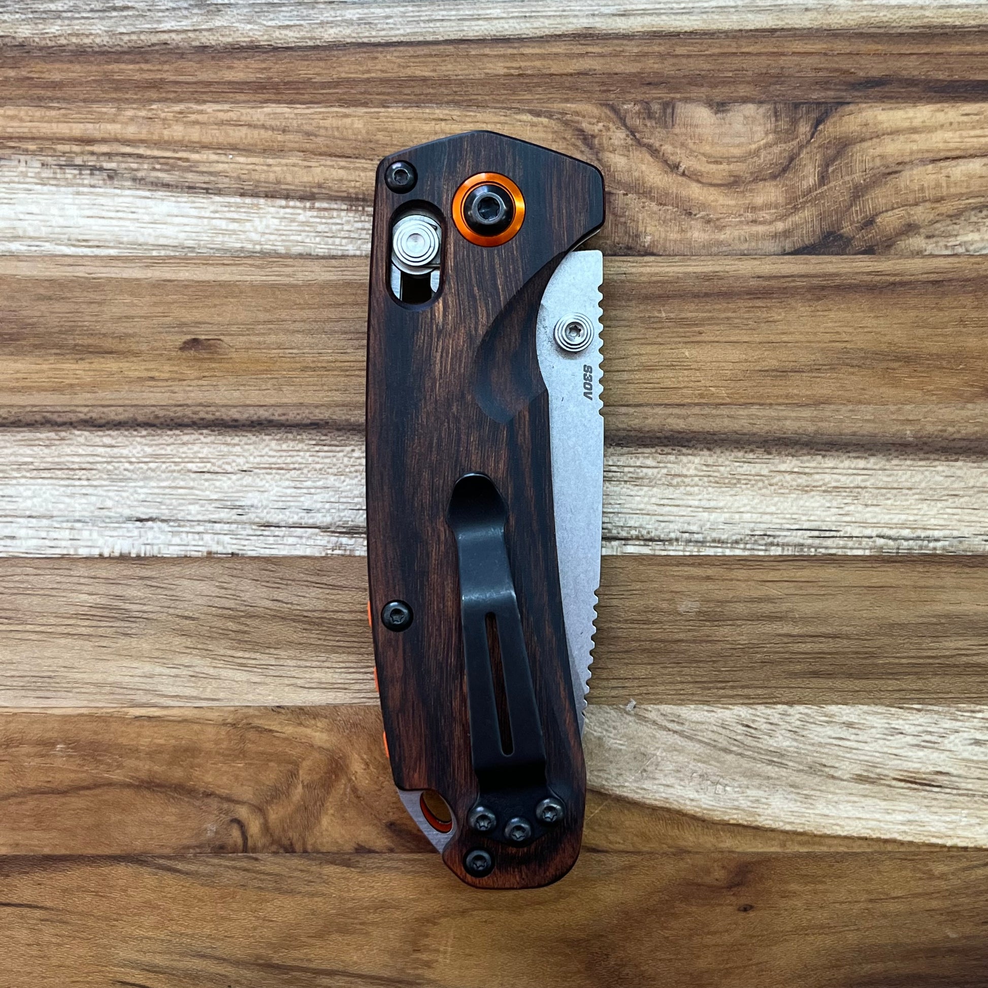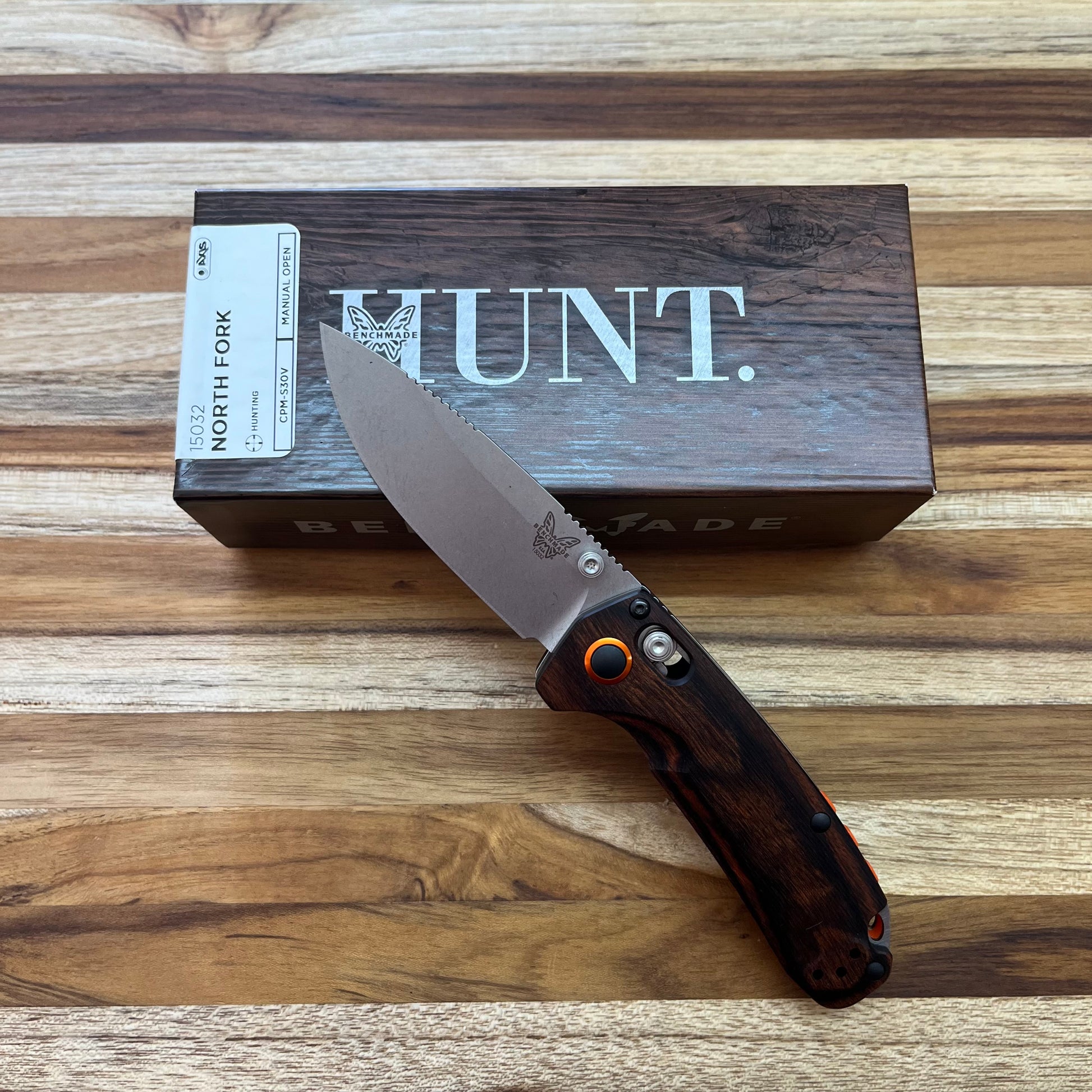 Designed for hunters who pursue game all year long, the Benchmade 15032 North Fork offers the ultimate combination of a hunting knife and outdoor EDC. Featuring a durable CPM-S30V drop point blade, Maple Stabilized Wood handle scales, and eye-catching orange accents, this robust folding knife excels at precise field dressing and all camp tasks. With its convenience, portability, and essential features, it's a must-have tool for any versatile outdoor expert.