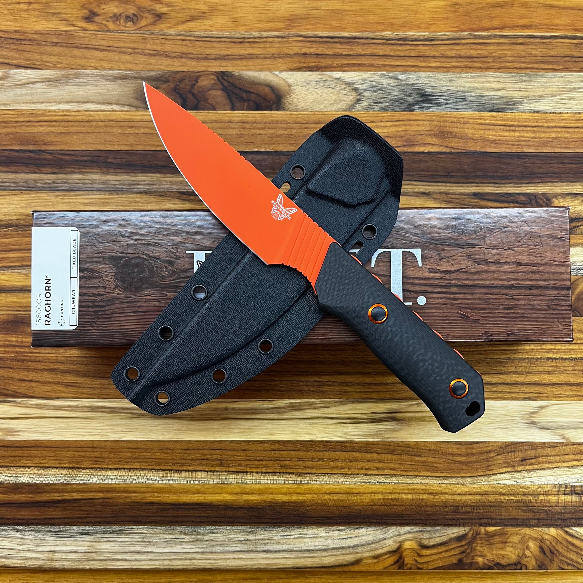 Benchmade Raghorn 4" Fixed Blade w/ Carbon Fiber Handle & Orange/Black Bolarton Sheath