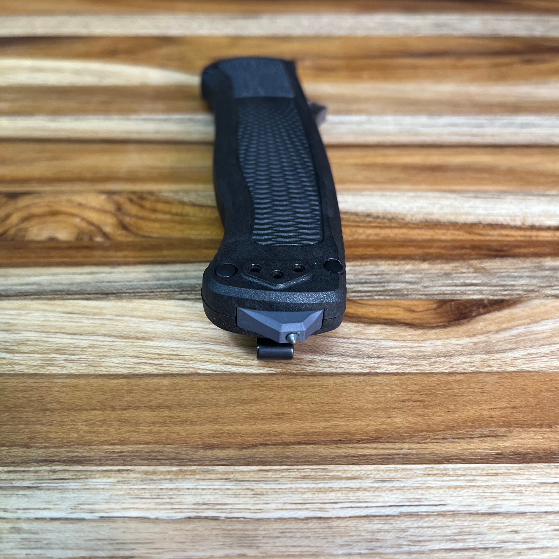 The Shootout, launched by Benchmade, is considered one of their most highly-anticipated releases. This EDC version boasts a sleek out-the-front design that has been the talk of the knife world. The new 5371FE and 5371BK-01 variants feature a drop point blade profile, making it more suitable for everyday carry. The double-action mechanism offers fast indexing and increased control in high-pressure situations, thanks to the textured Grivory handle. The updated versions also include a glass breaker, replacing the lanyard loop, solidifying its reputation as a serious OTF EDC option.