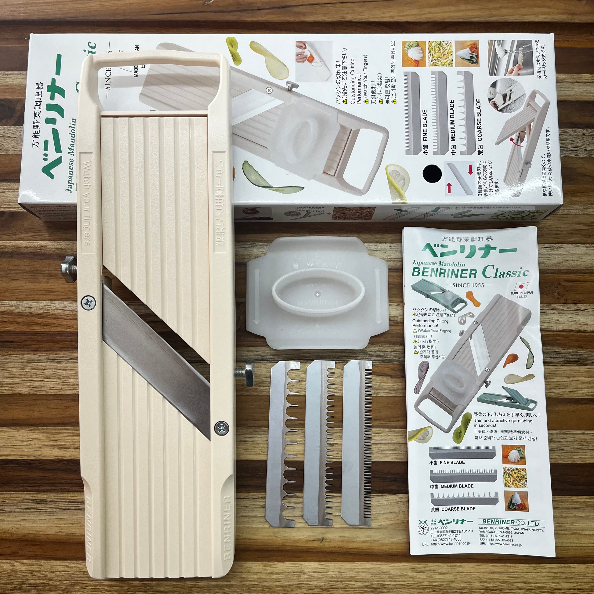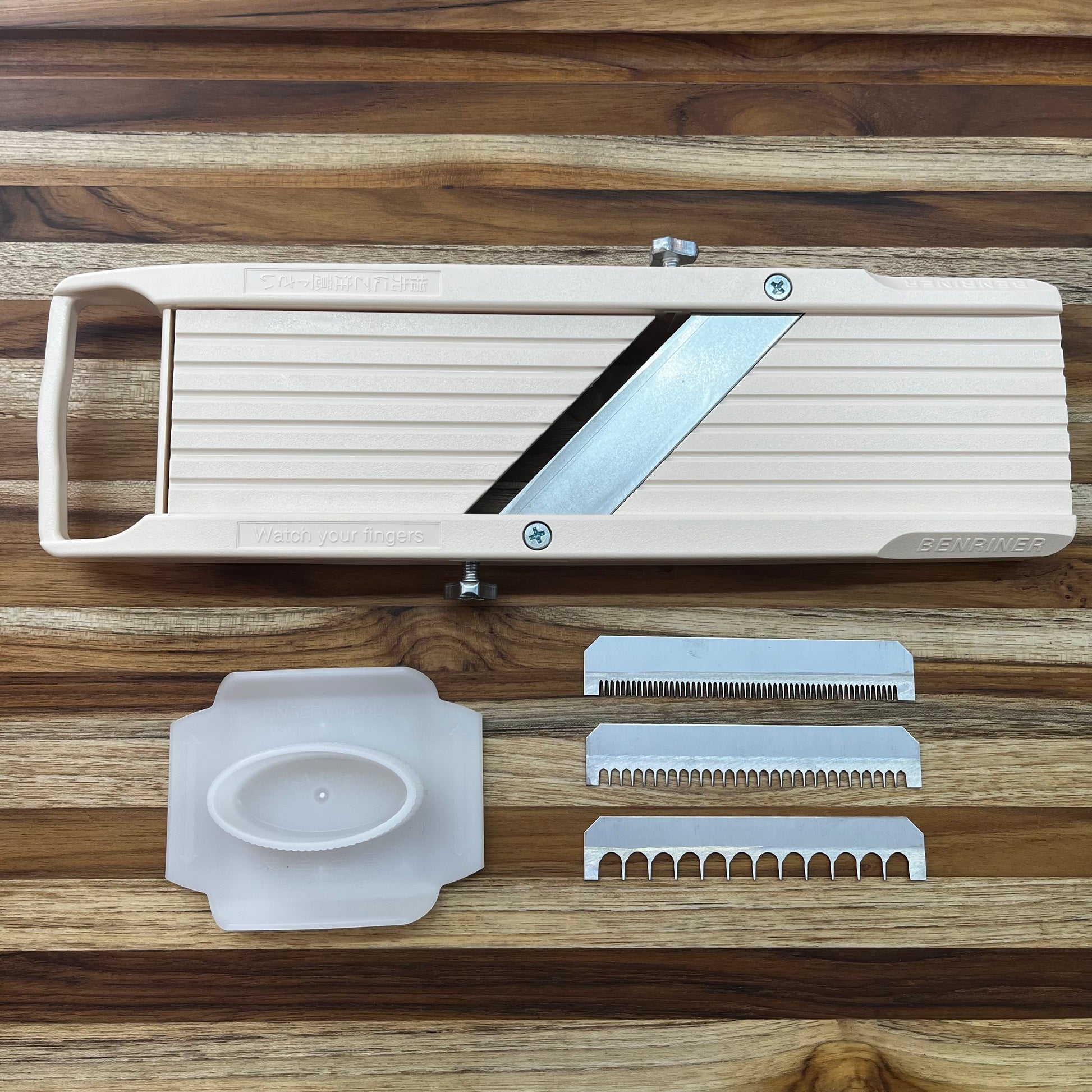 The Benriner Mandolin is a fast and efficient Japanese mandolin designed specifically for slicing vegetables. With its expert engineering, this globally popular tool makes vegetable preparation a breeze, saving you time and effort in the kitchen. Slice with precision and ease with the Benriner Mandolin.