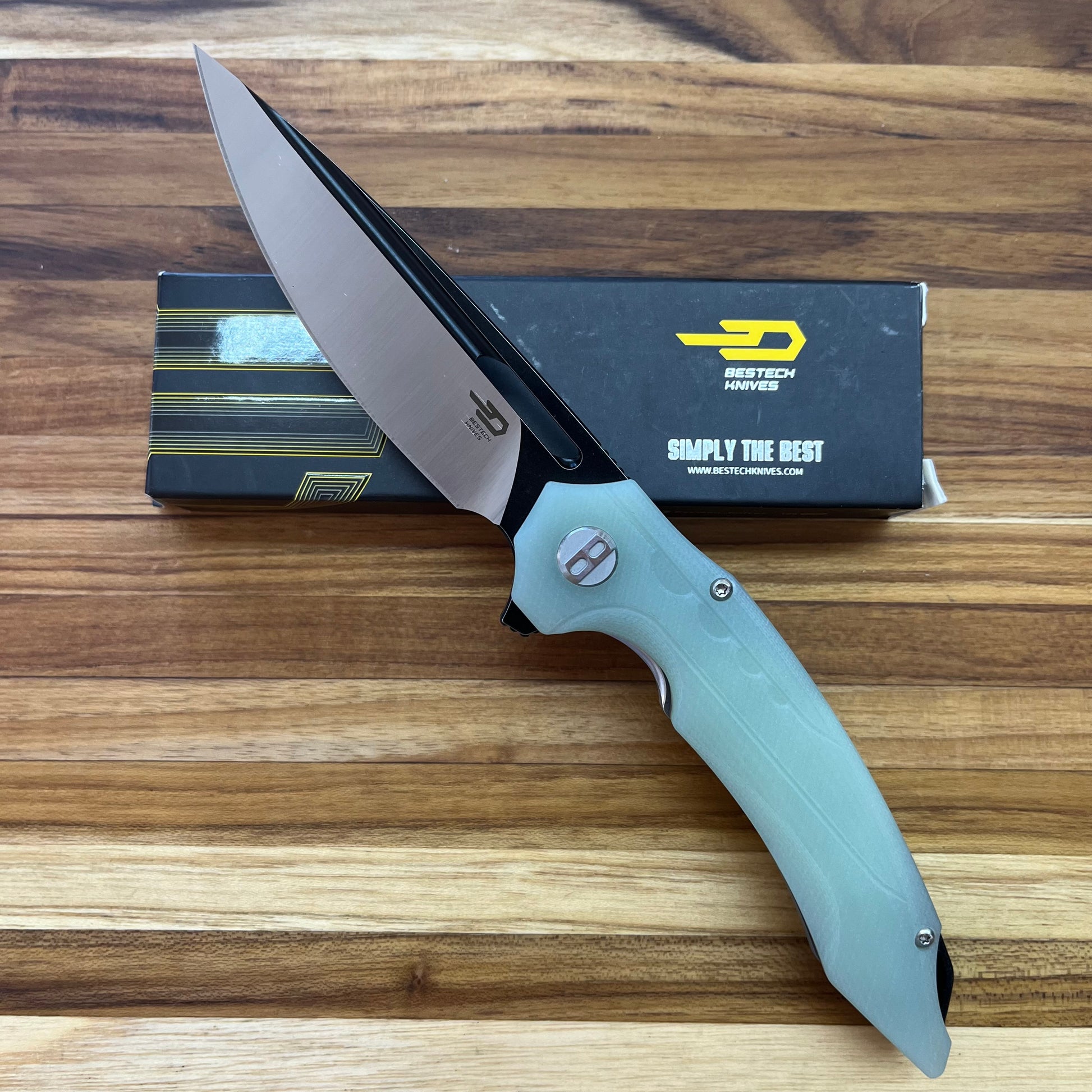 Bestech Knives Ornetta 3.5" Flipper Knife w/ Milled Jaded handle