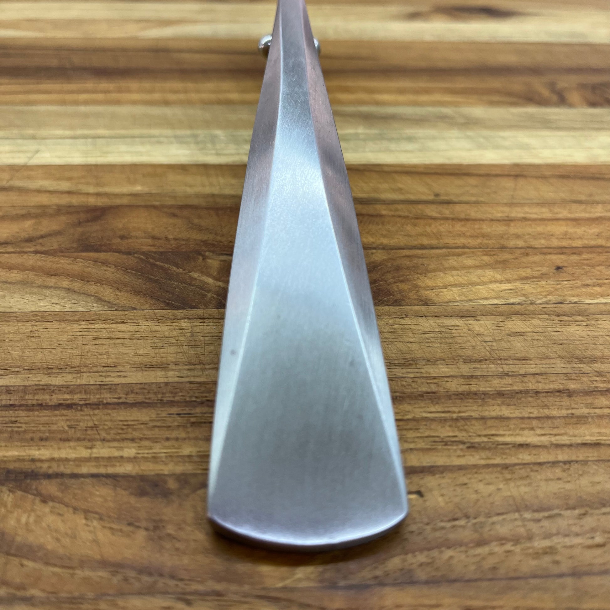 The Chroma Type 301 Series boasts an ergonomic handle crafted by F.A. Porsche, with a metal pearl marking the handle's end to enhance cutting control. It features a seamless, hygienic transition between blade and handle. These knives are ground using a unique technique so that the blade maintains its sharpness longer and is simpler to sharpen.