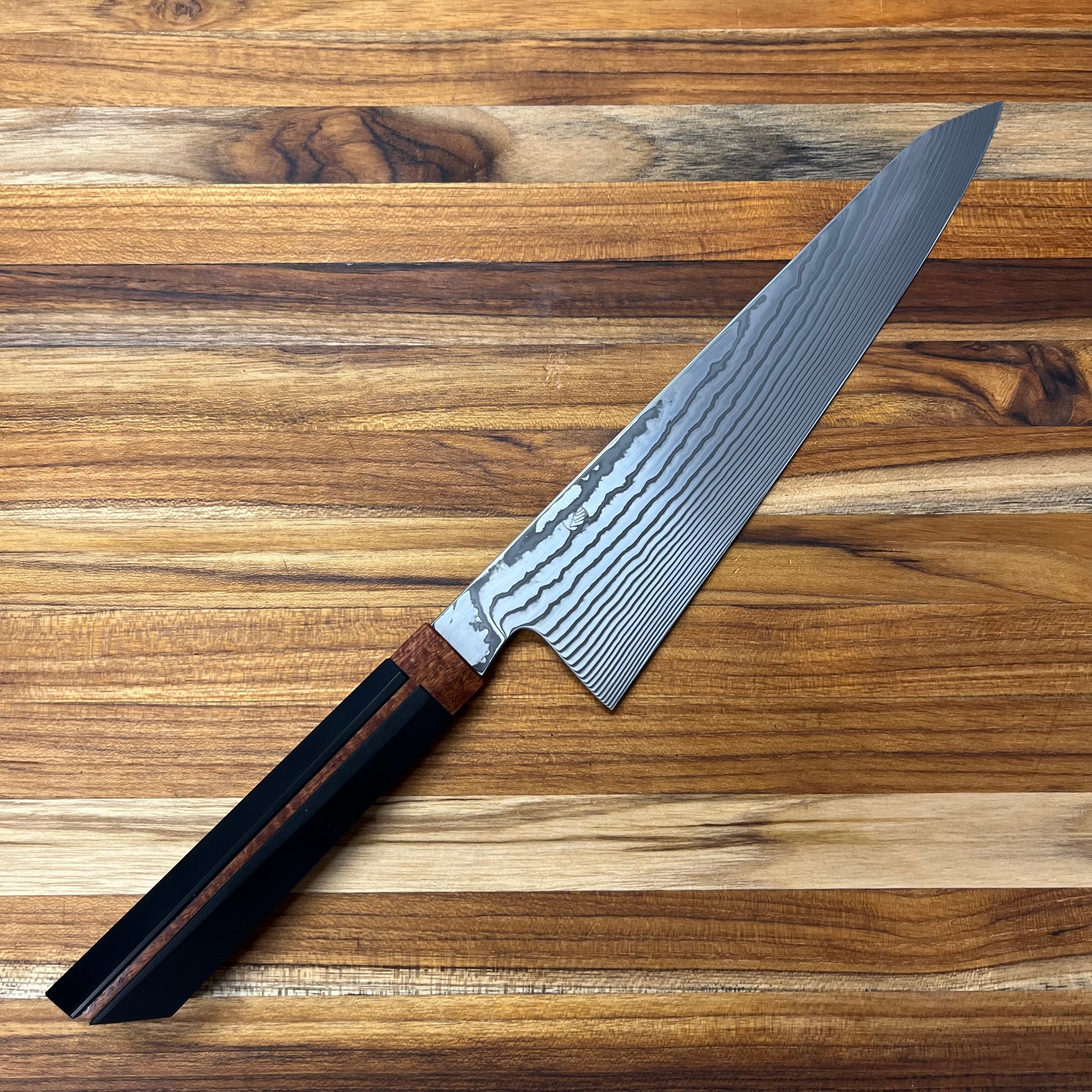 Enceladus 210mm (8.25") K-Tip Gyuto w/ Curly Narra & Paper Micarta Handle