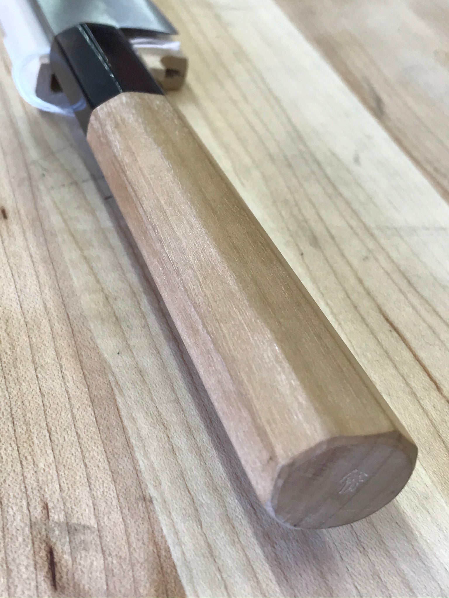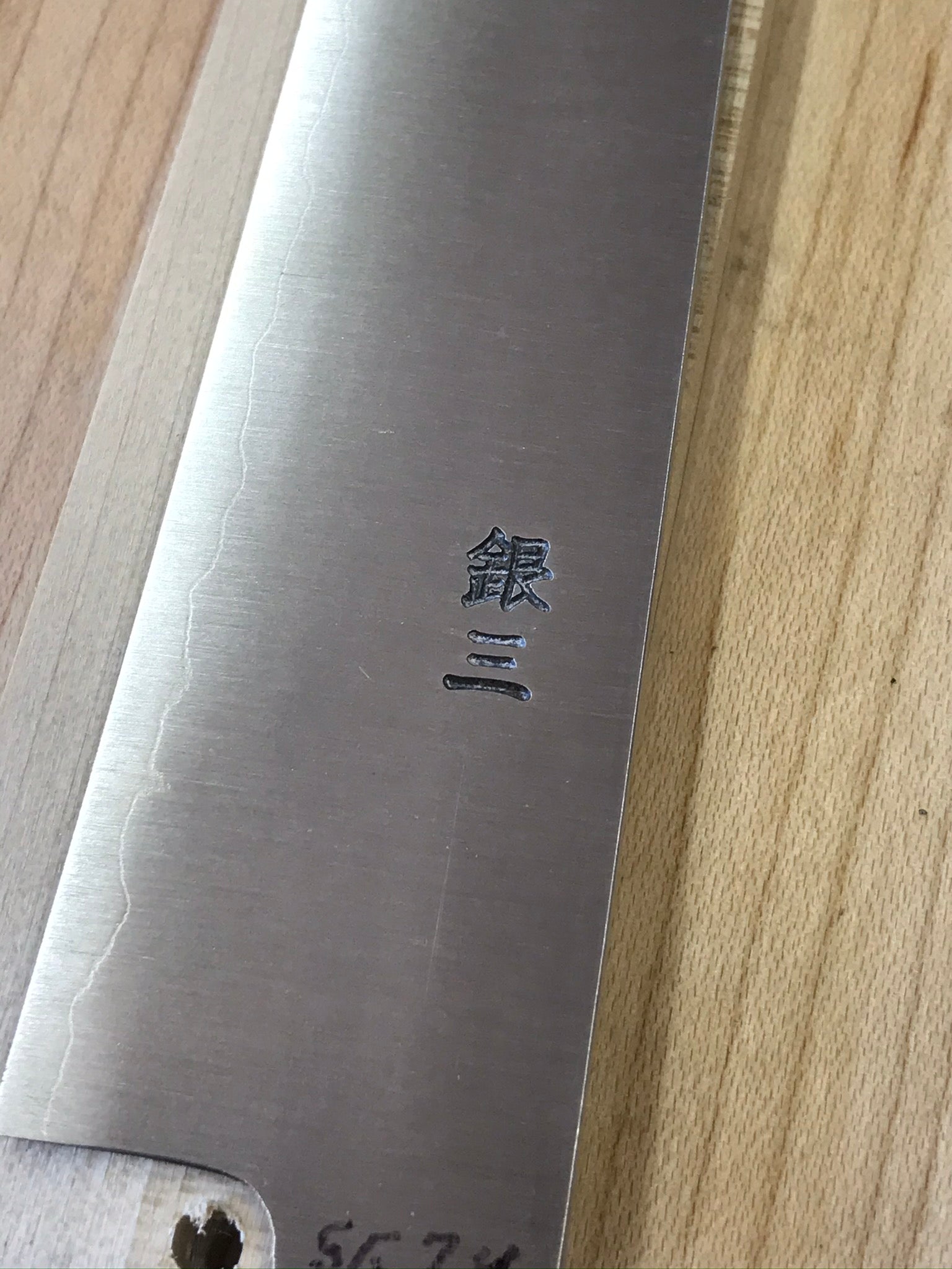 Kikuichi's Ginsan blades are hand forged from two layers with the harder Ginsan making up the edge and a softer stainless for the tang. They are also hand assembled by traditional craftsmen. This makes the knife easier to sharpen and care for.