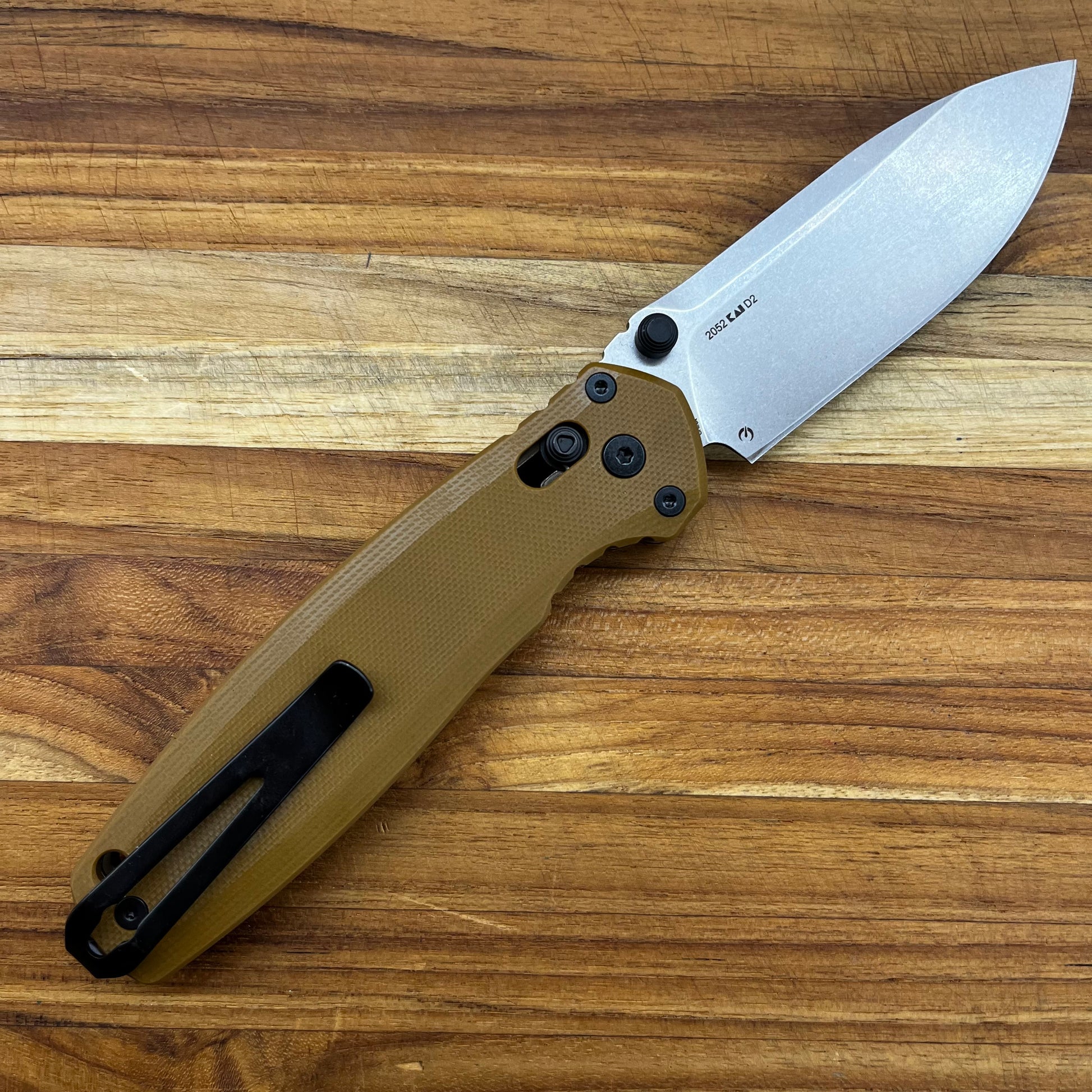 The Broadside is a multipurpose cutting tool that is perfect for a variety of jobs. Its D2 blade steel and saber grind provide added versatility, while the brown G10 handle offers a comfortable and secure grip for extended use. The KVT deployment system, activated with a thumb stud, ensures smooth and reliable operation. The blade is securely locked in place with DuraLock technology, and can be easily closed and carried with the reversible extra deep-carry pocket clip. Whether you're a professional tradesperson or a DIY enthusiast, the Broadside is a reliable and sturdy choice for all your cutting needs.