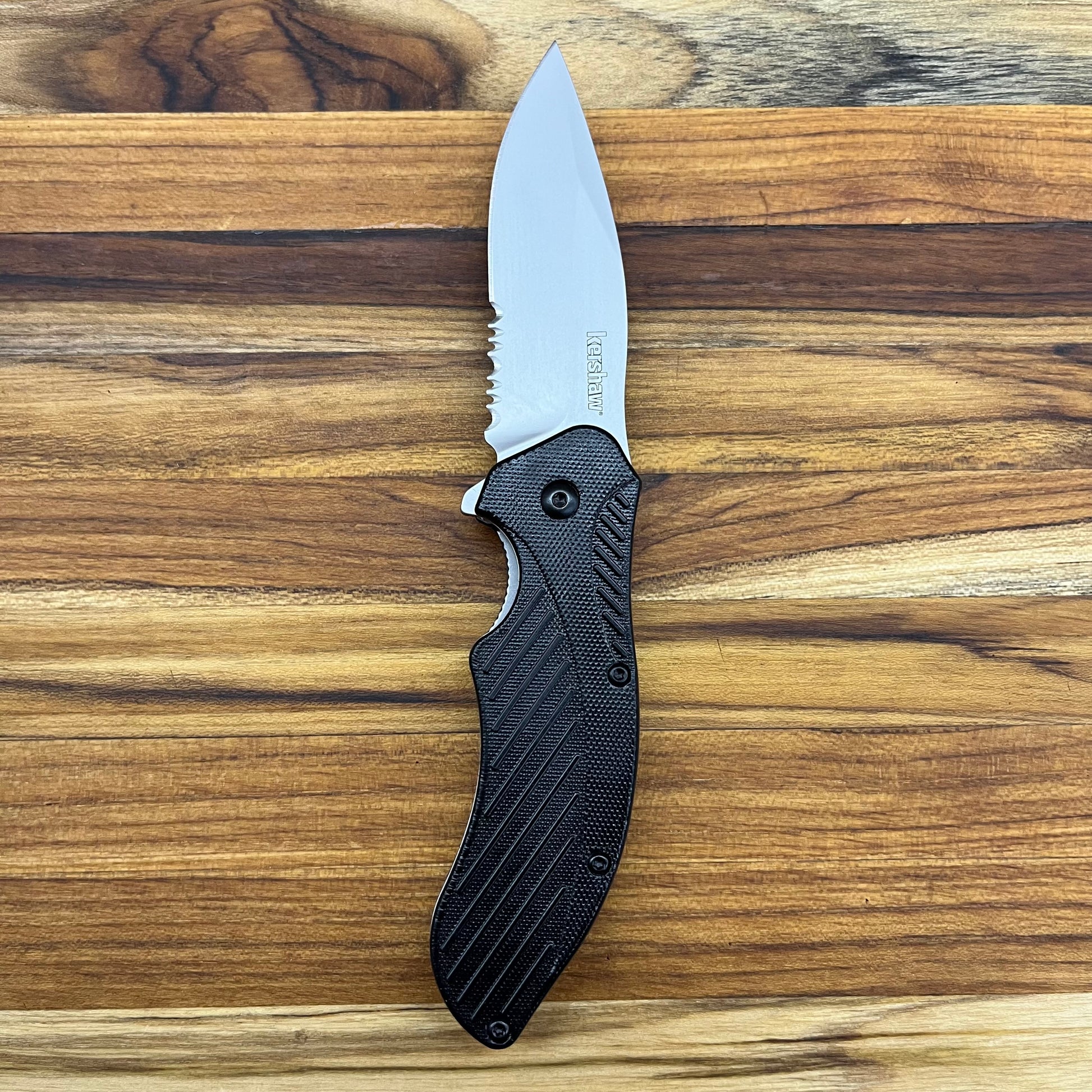 Affordable all-purpose pocketknife with durable 8Cr13MoV steel blade and partial serrations. Features a sturdy nylon handle with secure grip and easy one-handed, spring assisted opening system.