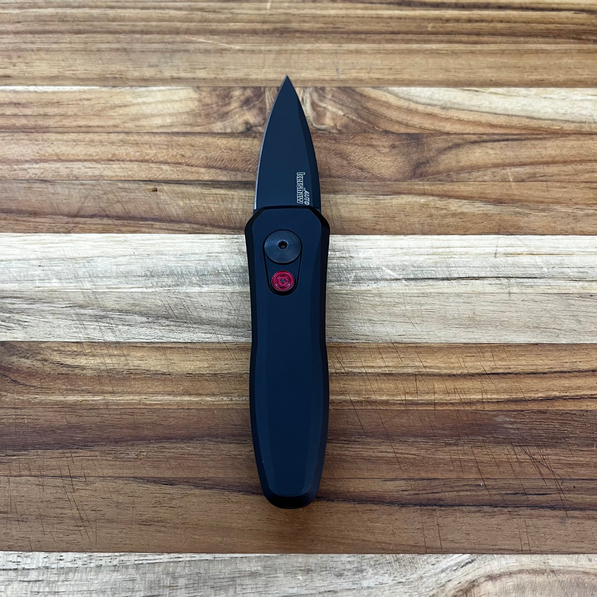 The short blade of the Launch 4 gives it a stylish appearance, while also making it legal in a wider range of places, like California, compared to other autos. Its superior performance and appearance are thanks to the upgraded CPM 154 blade steel with a Cerakote coating, along with a compact anodized aluminum handle and a powerful opening kick. It also features a single-position pocketclip. Made in the USA!