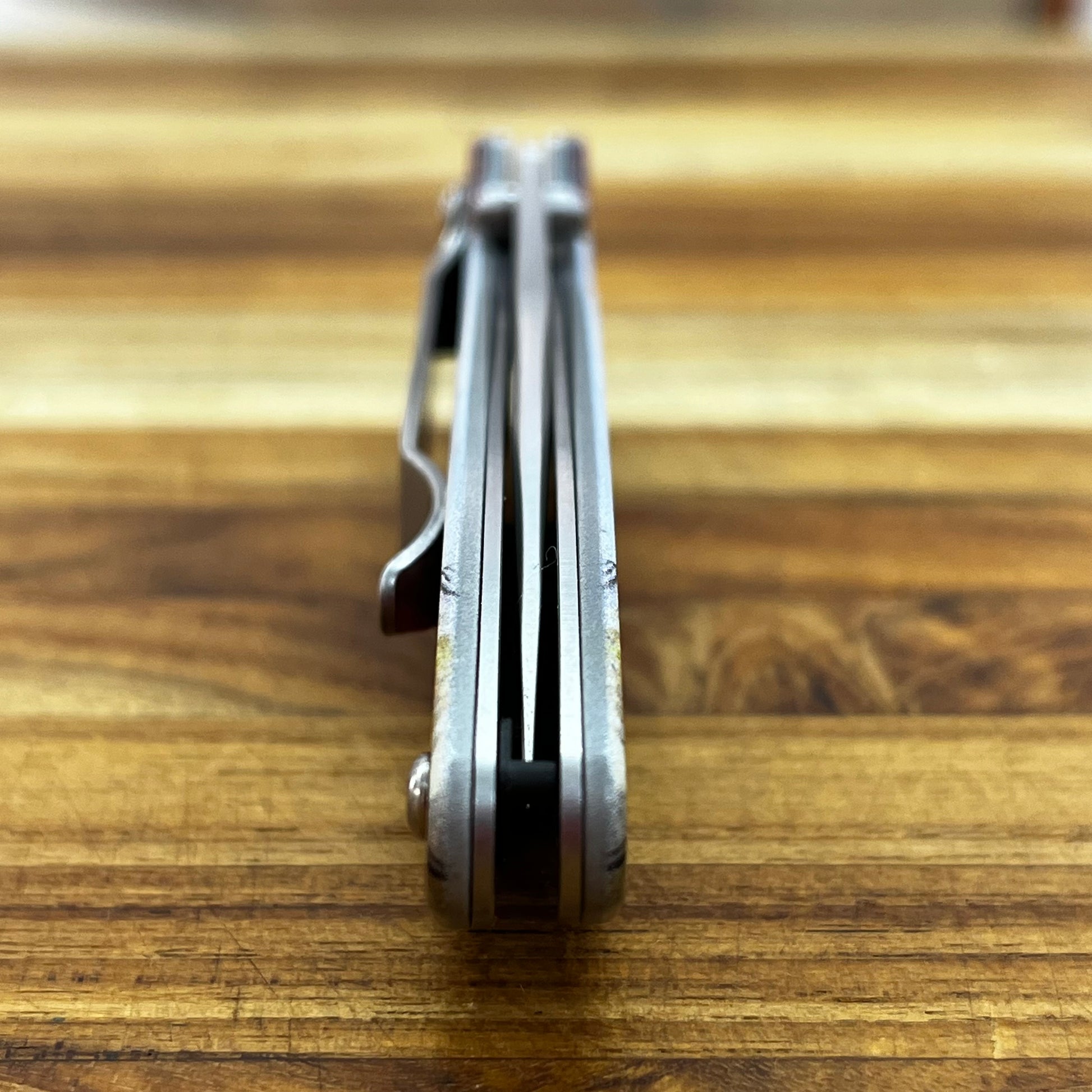 | Blade | 14C28N Bead-Blast Drop Point Ken Onion Design |
