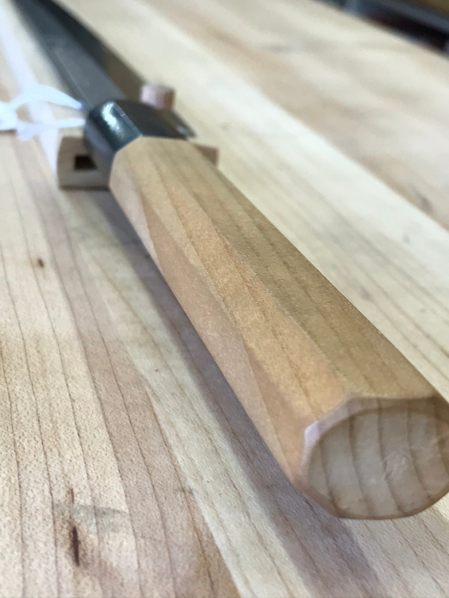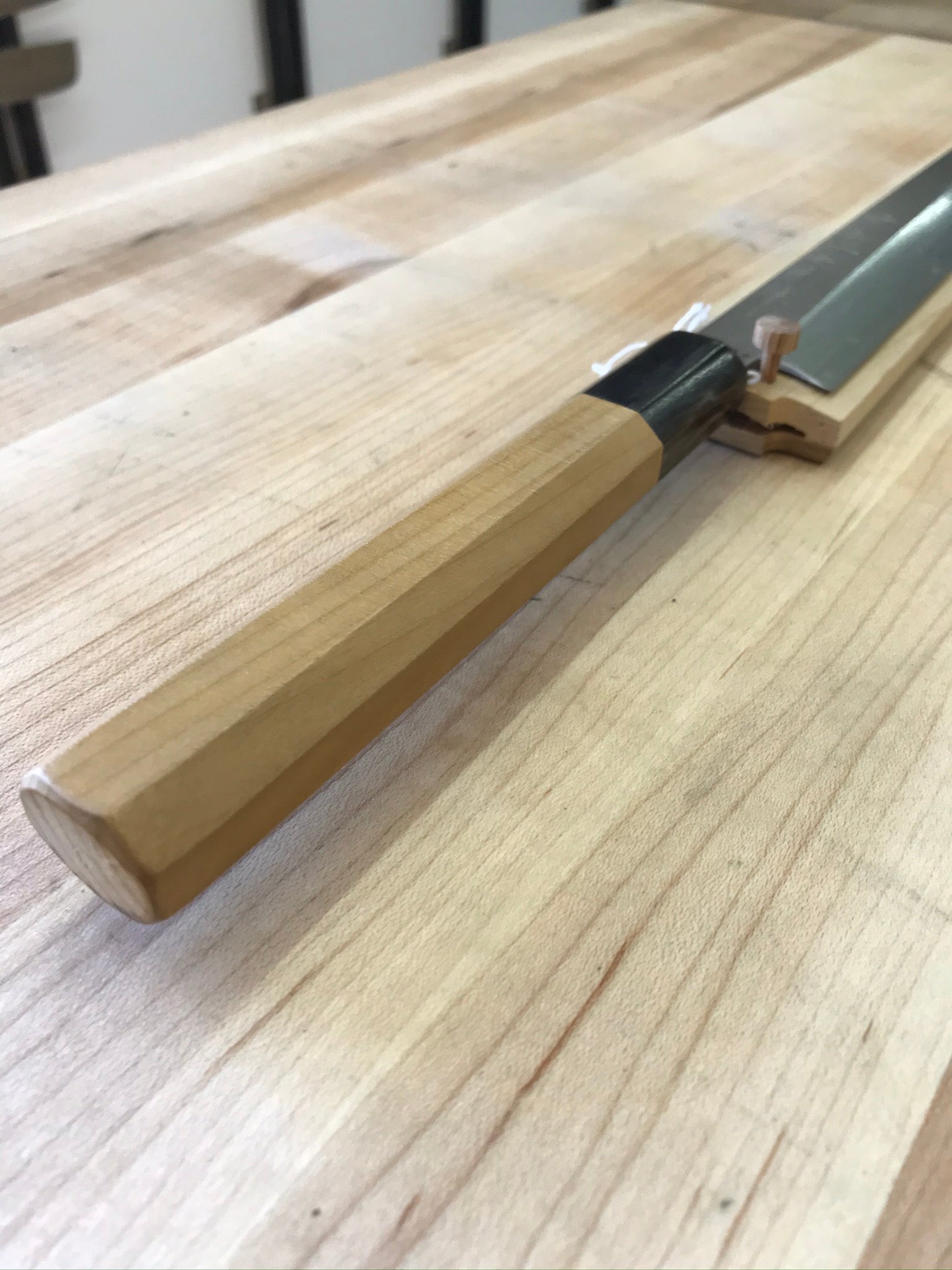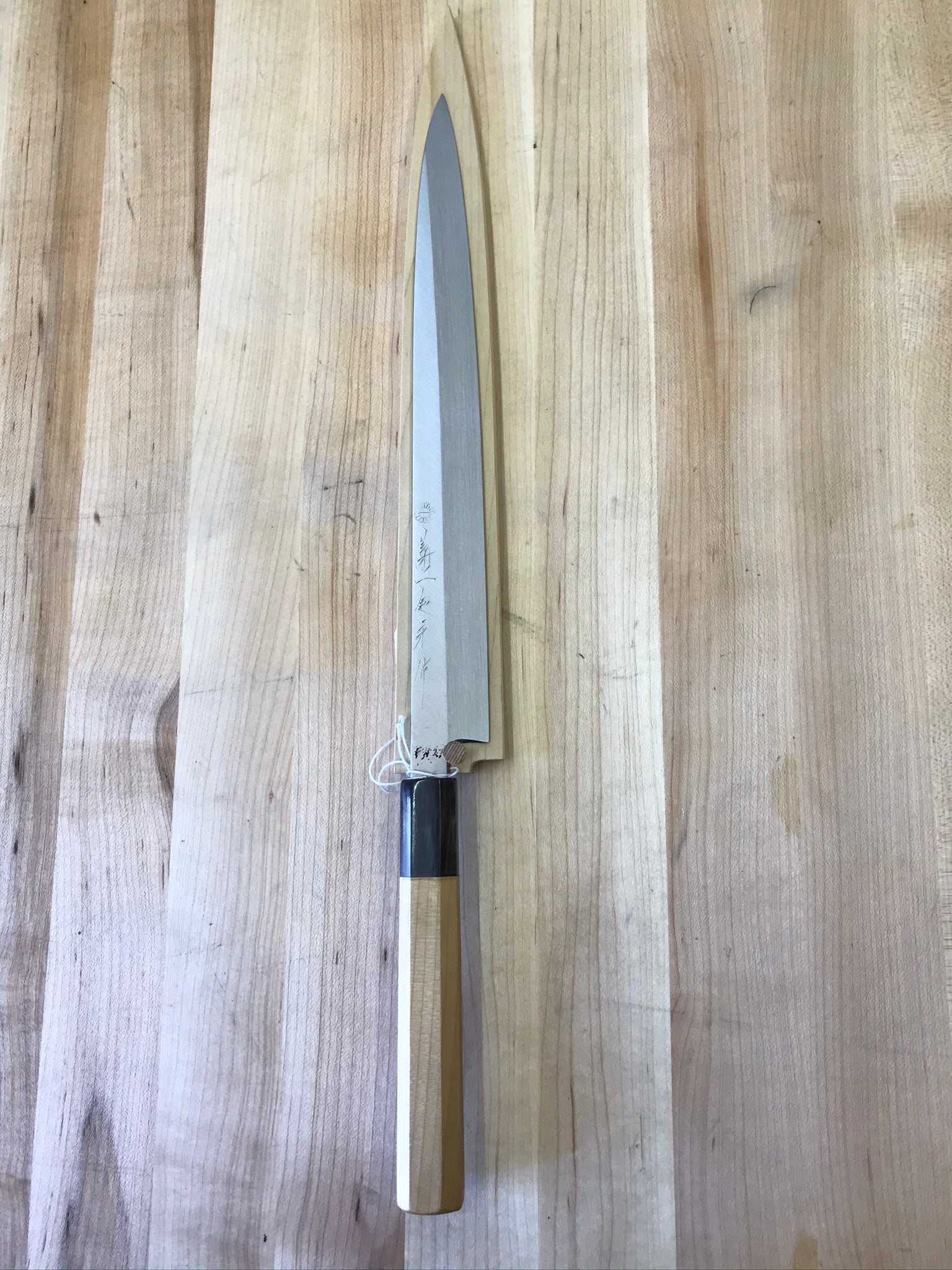 Honyaki is the highest quality, single bevel traditional knife that Kikuichi offers. The entire blade is hand forged in the sword making tradition from a single piece of steel. These are top of the line knives for professional use. Fuguhikis are like yanagis, but thinner.