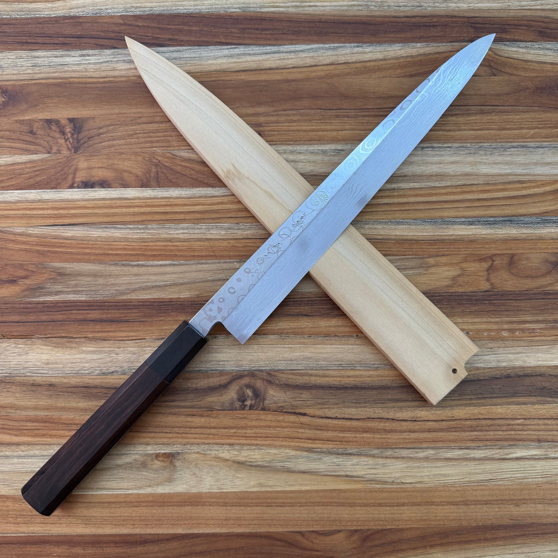 Kikuichi Kasumi Blue Damascus 270mm (10.5") Yanagi w/ Saya and Ebony Handle