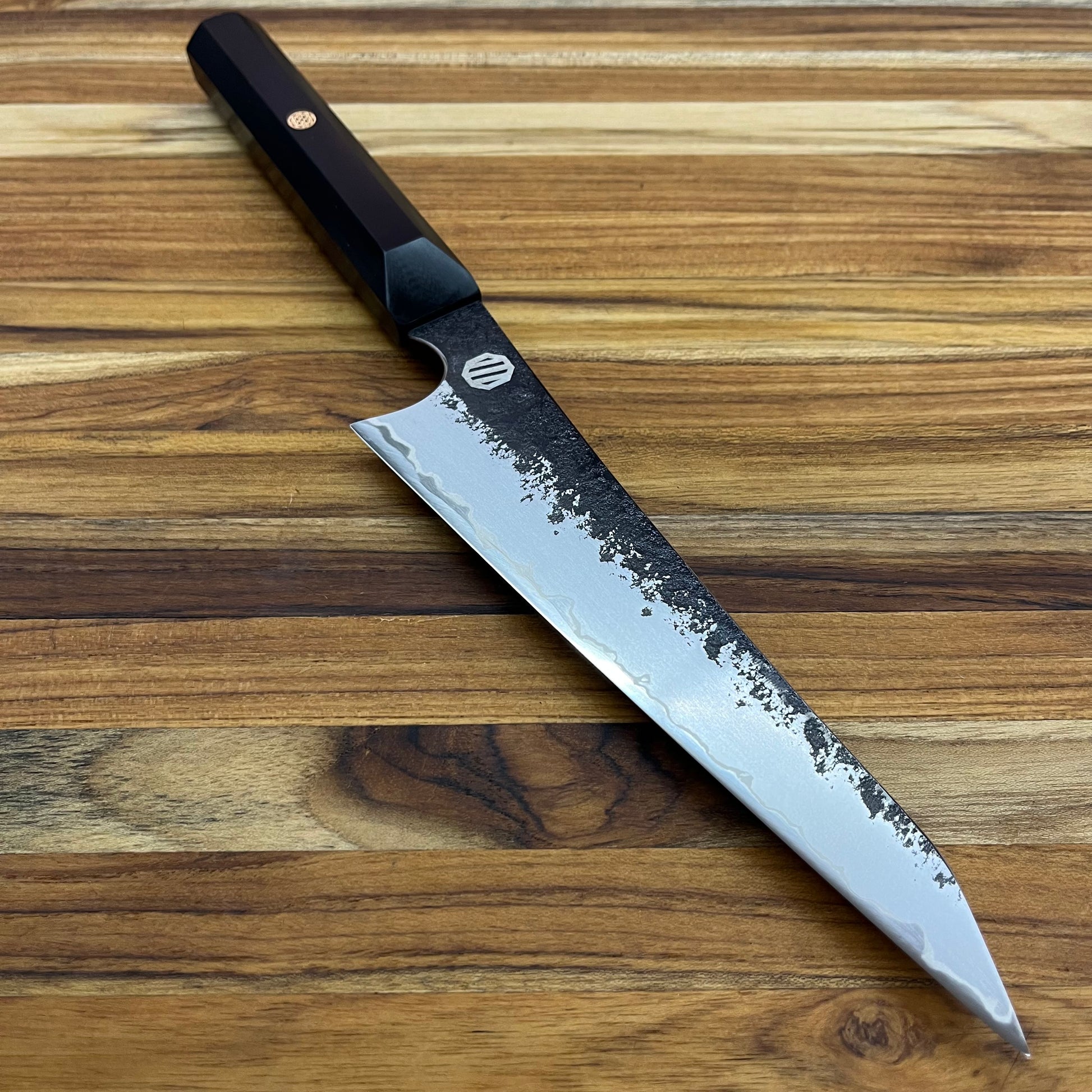 The Meraki II represents a refined approach to utility knife design, addressing common ergonomic shortcomings found in standard models. With its extended blade length and elevated heel height, it eliminates the discomfort of knuckle contact during cutting while maintaining exceptional edge geometry. This 7" blade delivers the cutting performance typically reserved for chef knives, making it a capable standalone option or complementary tool. The design balances weight distribution with agility, providing the precision and control demanded by discerning cooks. Built on the proven performance foundation of the Meraki lineage, this iteration prioritizes both functionality and user comfort.