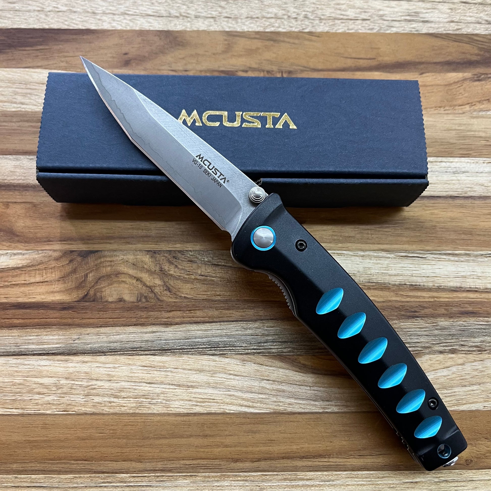 Mcusta USA Katana 3.5" Folding Knife w/ Black & Blue Aluminum Handle