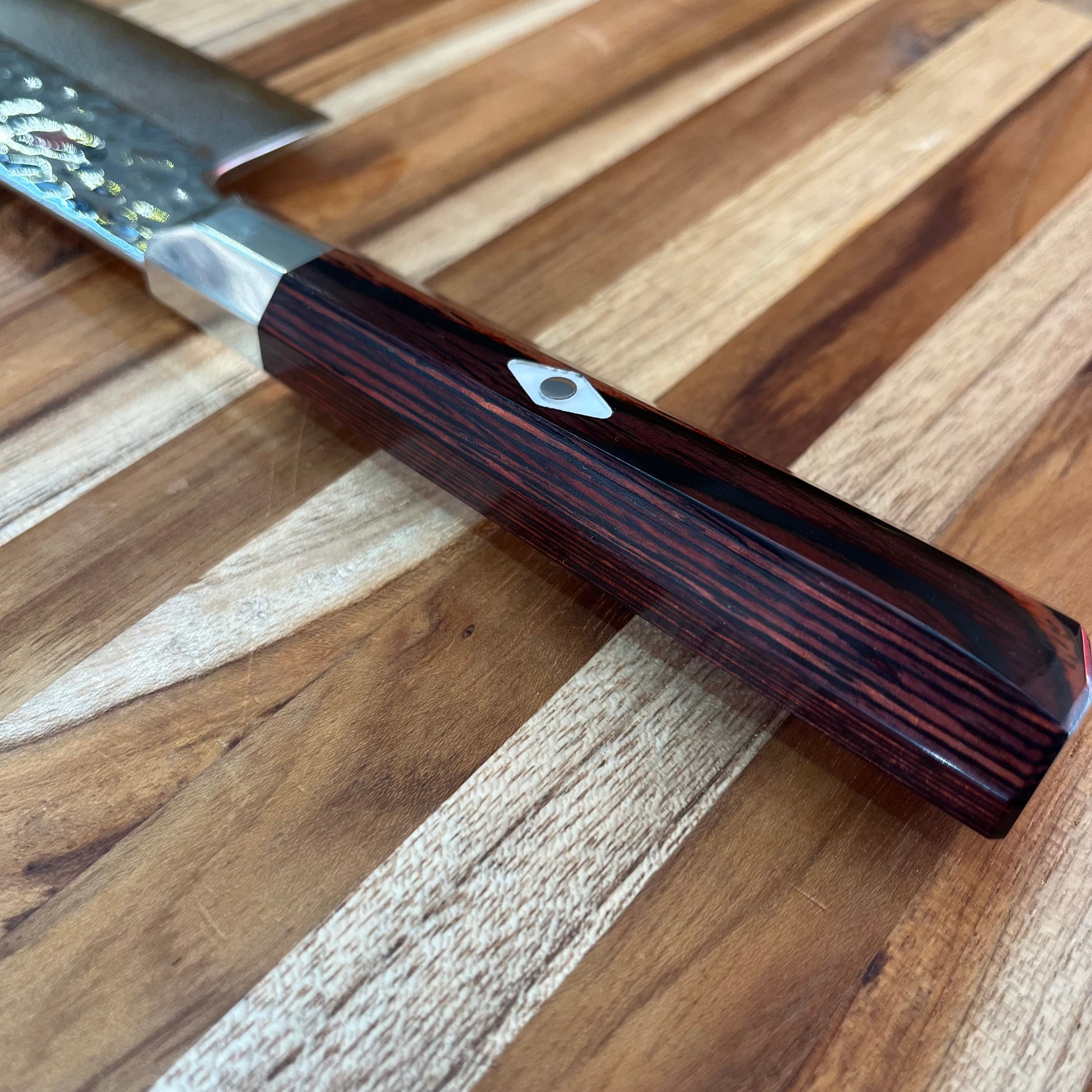 Red Pakkawood with Nickel Silver Bolster and Mosaic Pin Octagonal Wa Handle |
