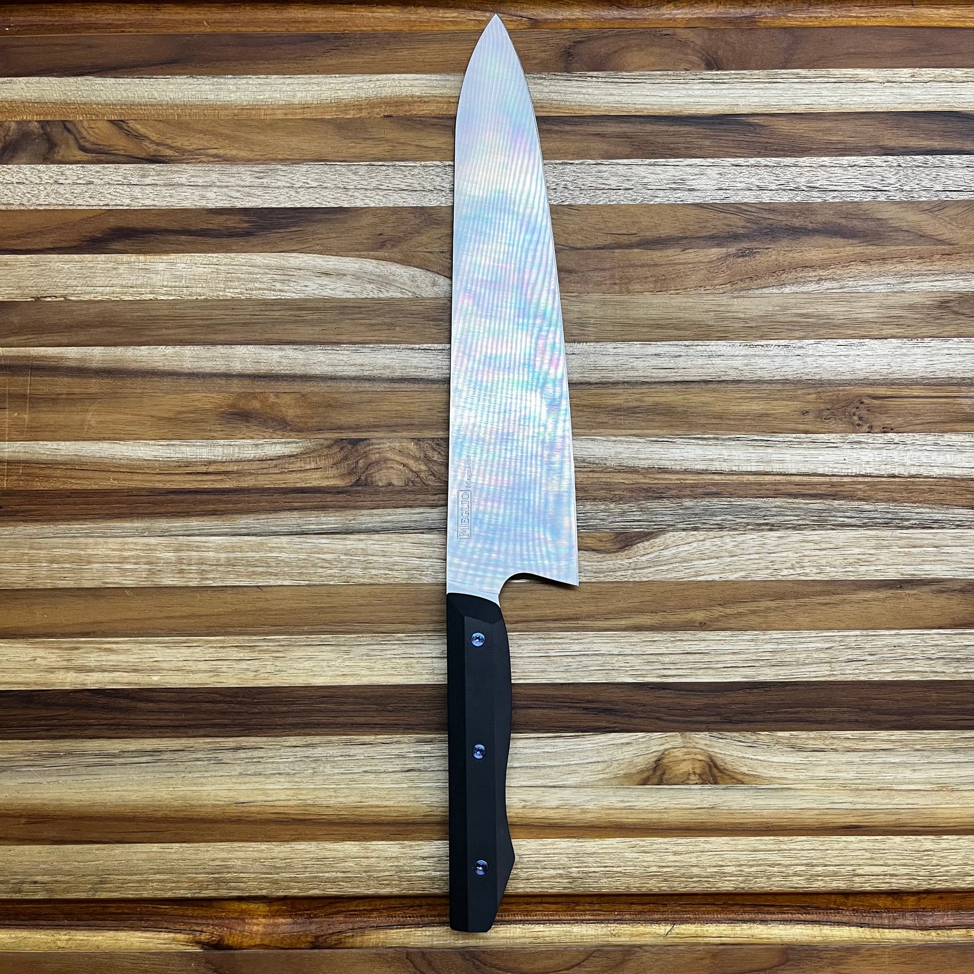 Crafted with MagnaCut, a cutting-edge stainless steel known for its superior performance compared to other stainless and tool steels in addition giving many carbon steels a run for their money, this sleek 10" gyuto showcases exceptional durability. With its low chromium composition, MagnaCut boasts high levels of toughness, resulting in long-lasting sharpness and resistance against rust, stains, and corrosion.