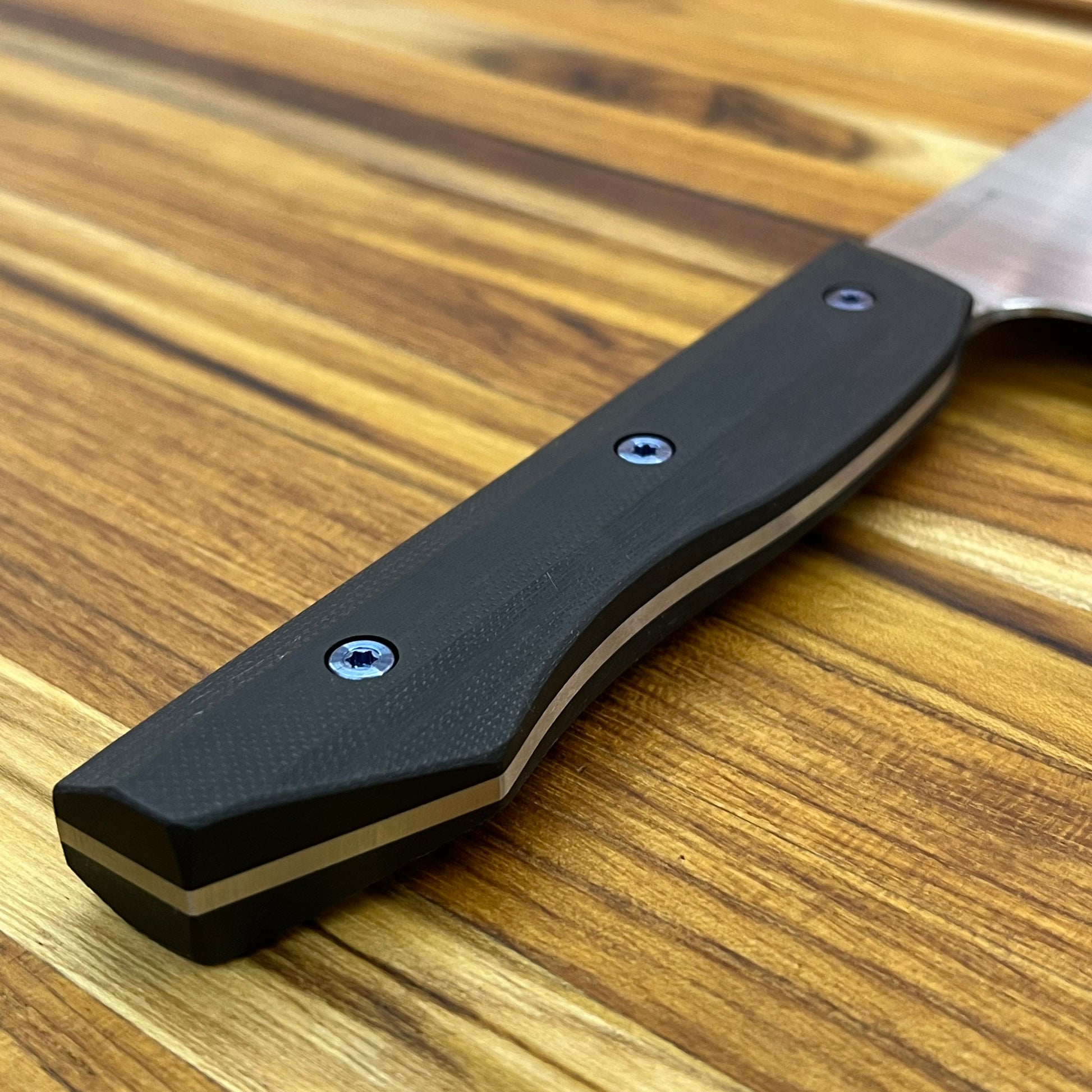 This 8" Gyuto features advanced semi-stainless CD#1 steel, offering impressive durability and edge retention comparable to Magnacut. Unlike more abrasion-resistant steels, CD#1 sharpens more easily and responds well to maintenance, ideal for those who prioritize a keen edge. While it requires drying after use to avoid staining, CD#1 is less susceptible to rust than AEB-L. Applying a wax or conditioner during storage helps maintain its pristine condition.