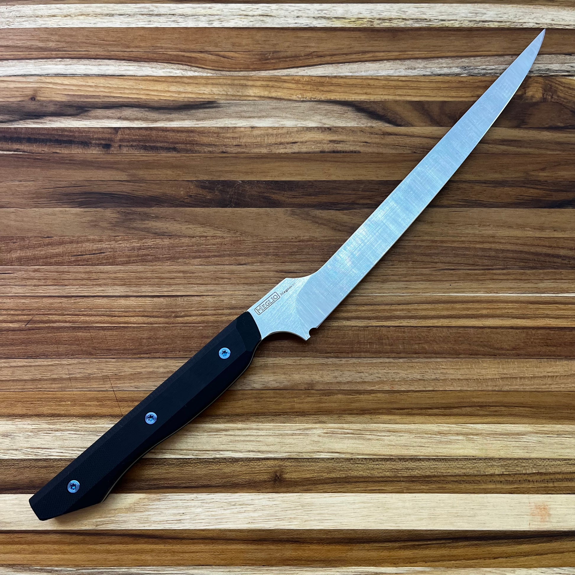 This beautiful 8" Offset Fillet knife is made with MagnaCut, a high-performance stainless steel, perfect for professional and home chefs alike.