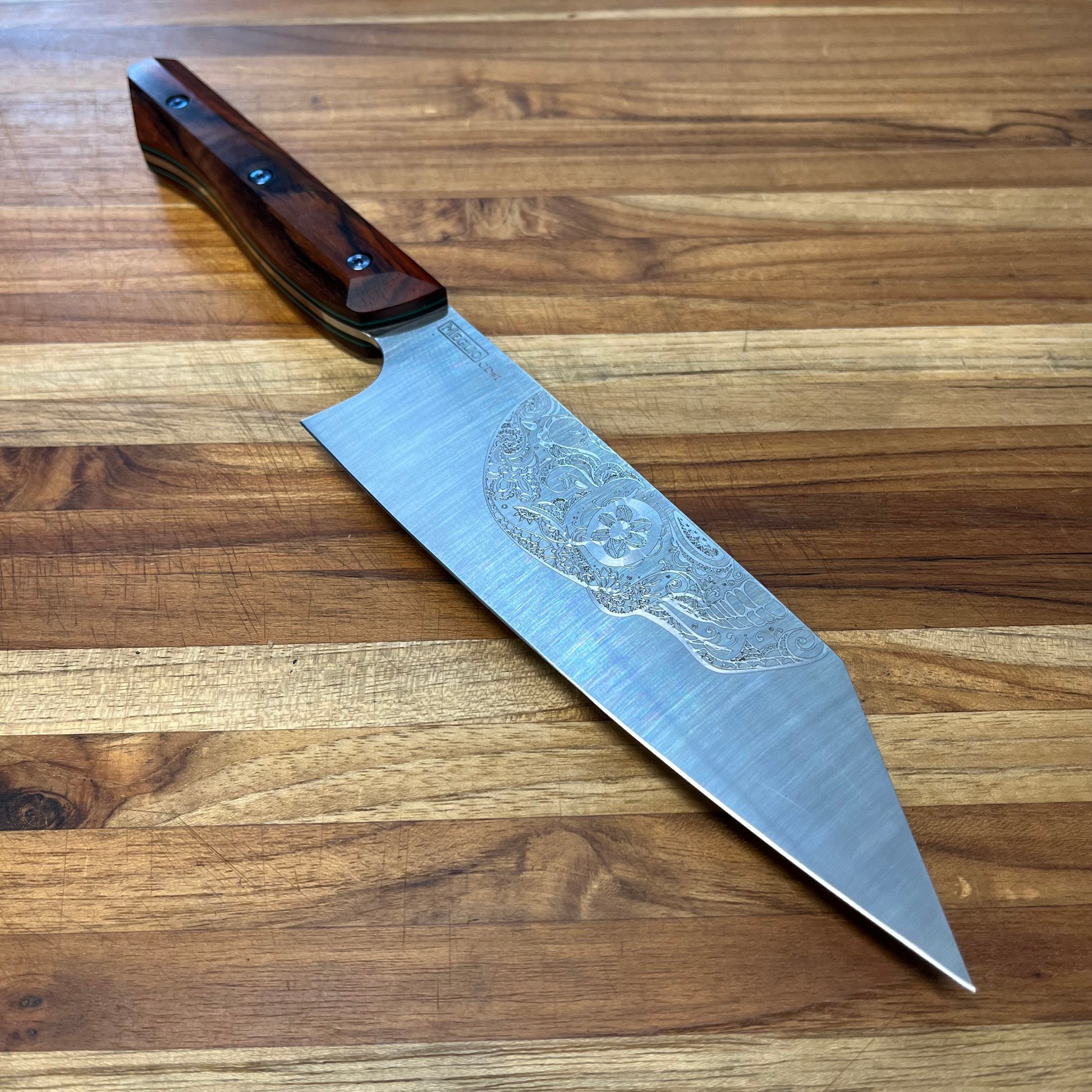 Meglio Semi-Custom 6.5" CD#1 Satin Kiritsuke w/ Lasered Sugar Skull & Cocobola Handle