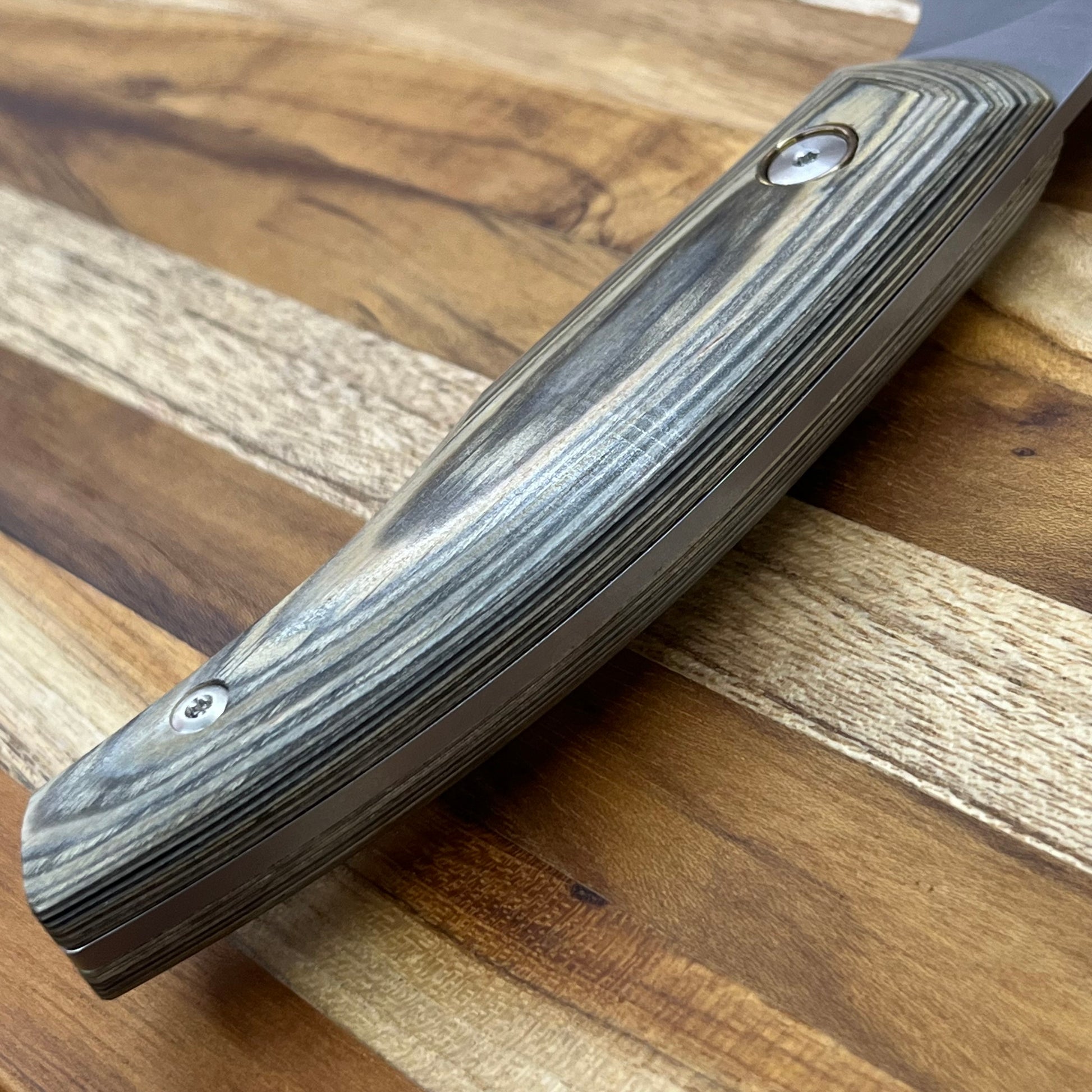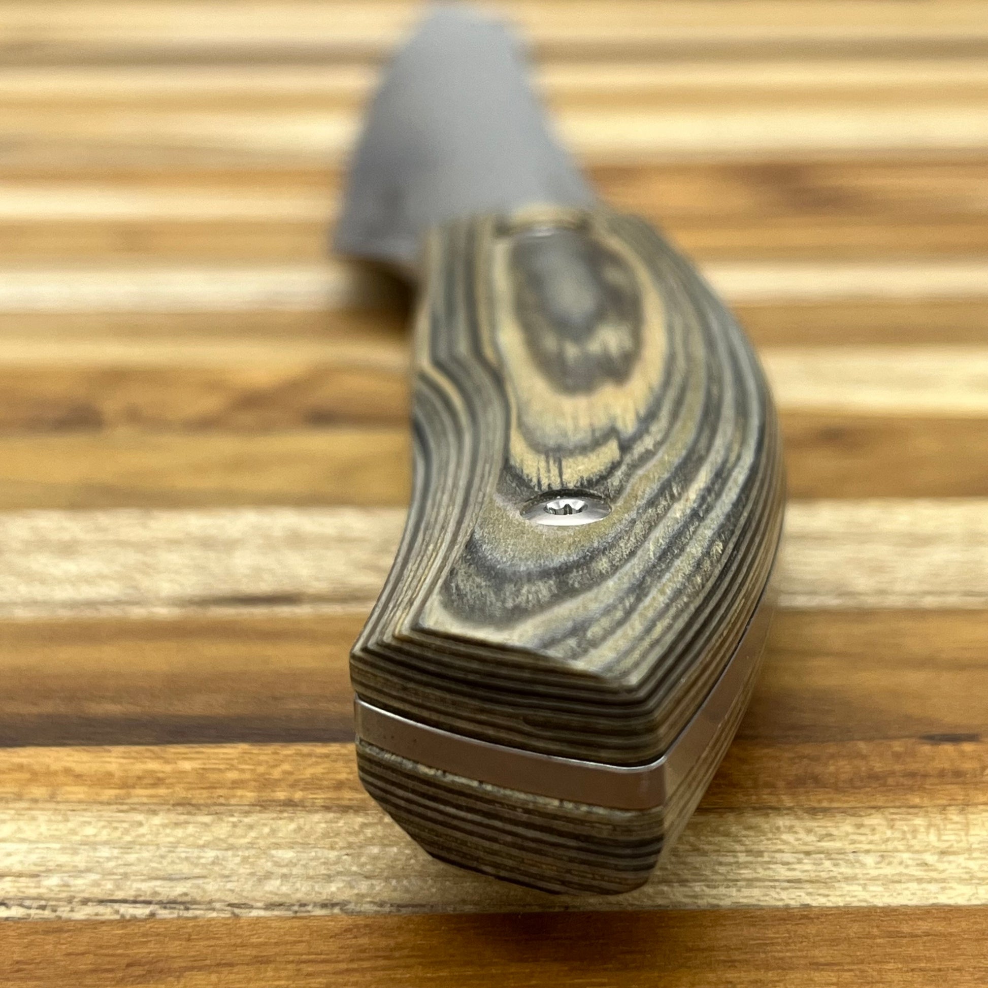 **DO NOT put in Dishwasher. Hone with fine ceramic rods or strop. Make sure to wipe the blade often and keep dry at all times. Patina (discoloration) is normal and can form on exposed carbon steel edge.