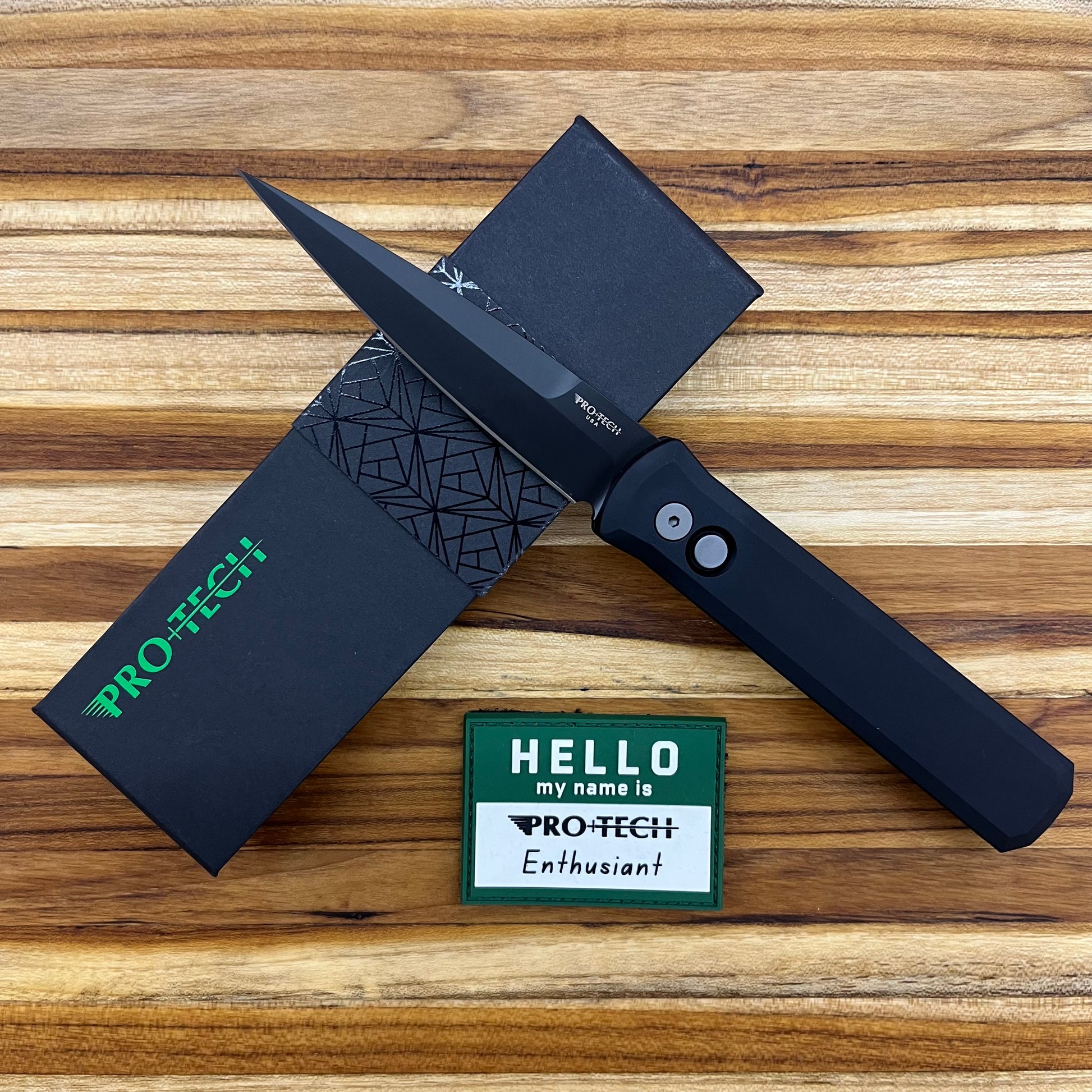 Pro-Tech Godfather 4" Auto w/ DLC Blade & Black Aluminum Handle