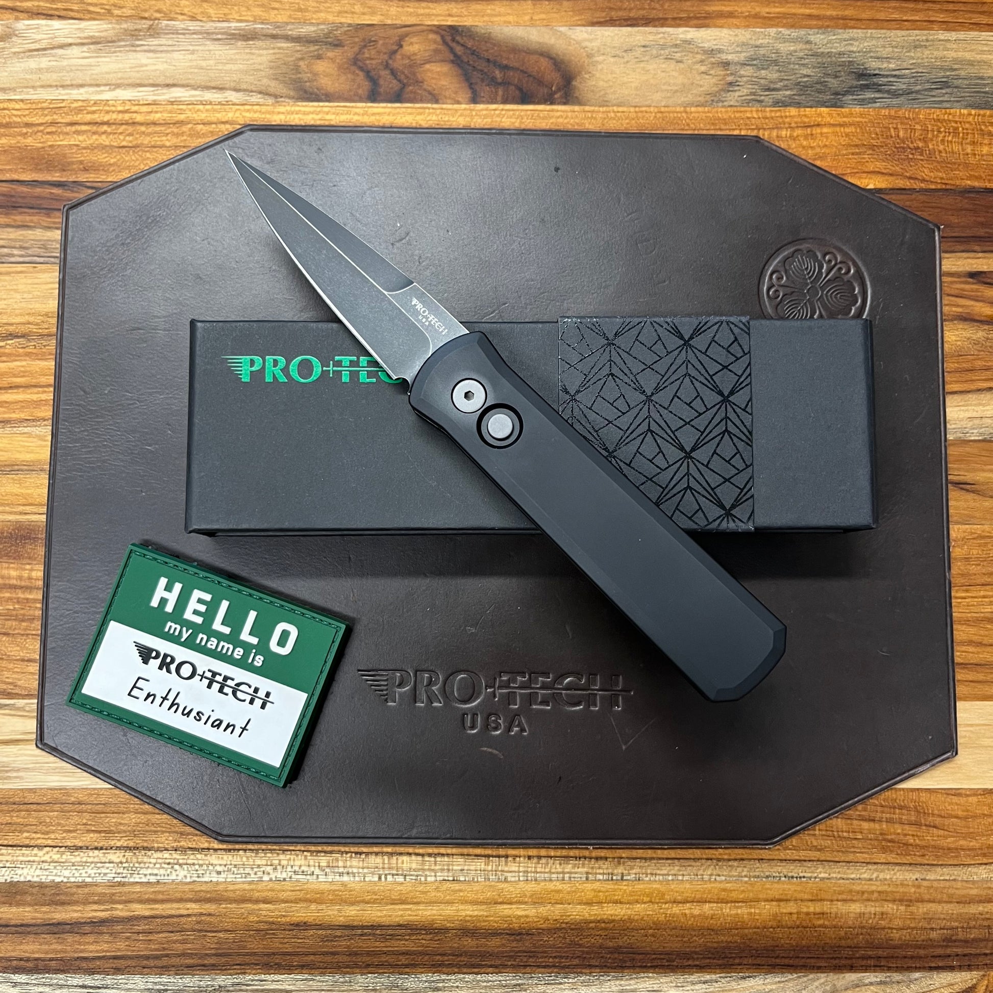 Pro-Tech Godson 3.15" Auto w/ DLC Washed Blade & Black Aluminum Handle