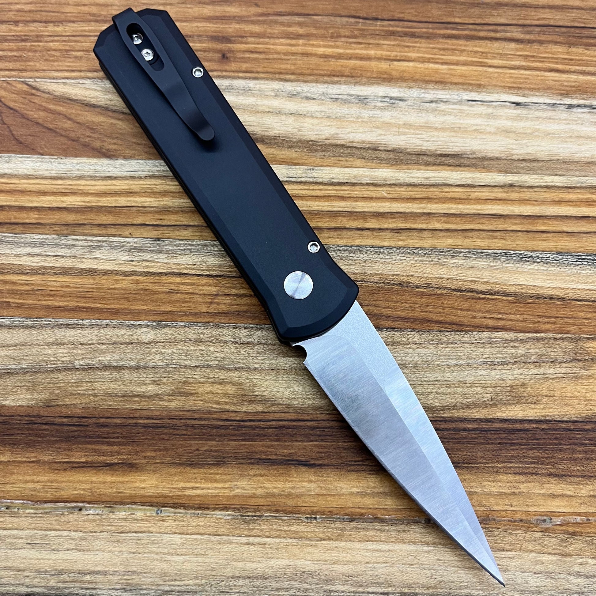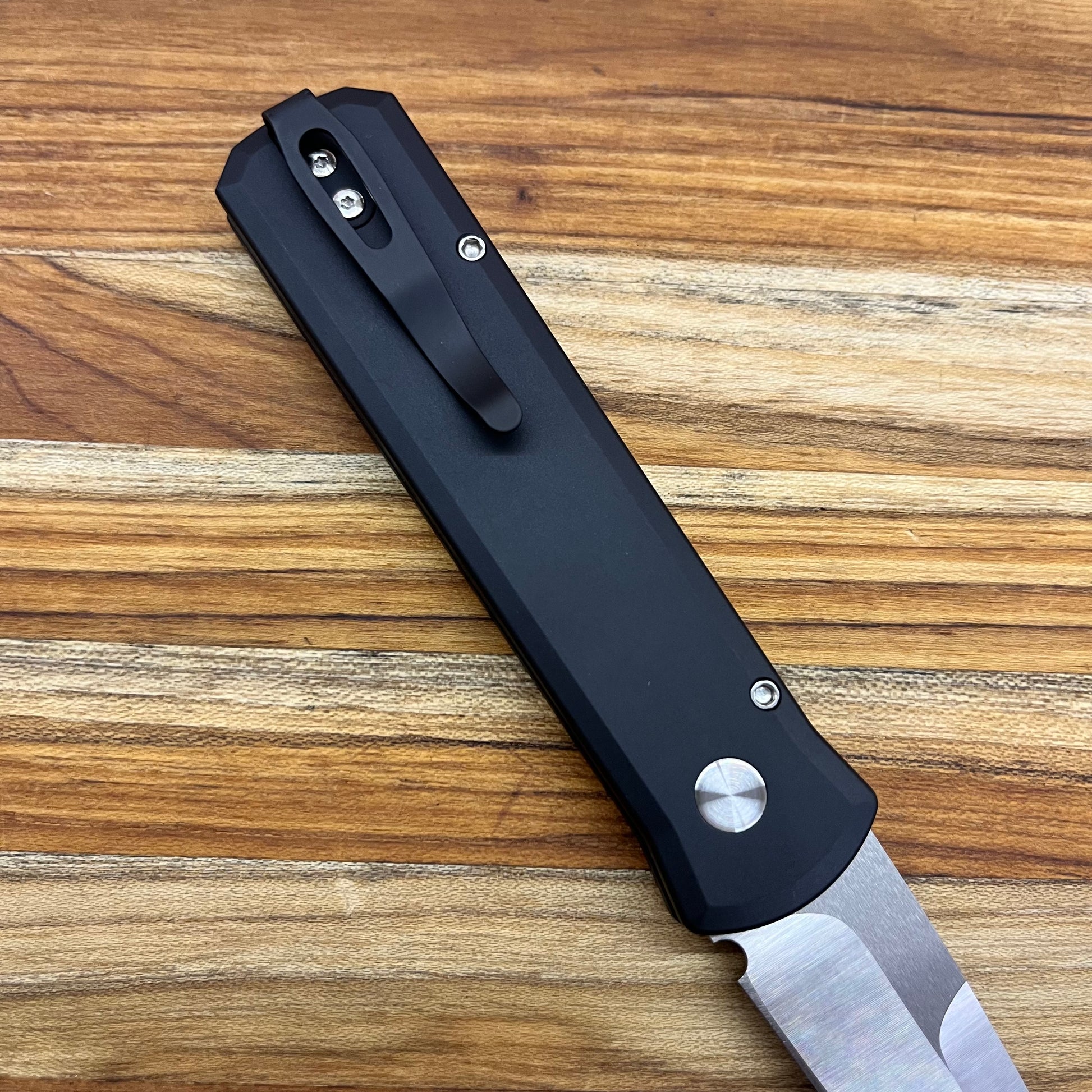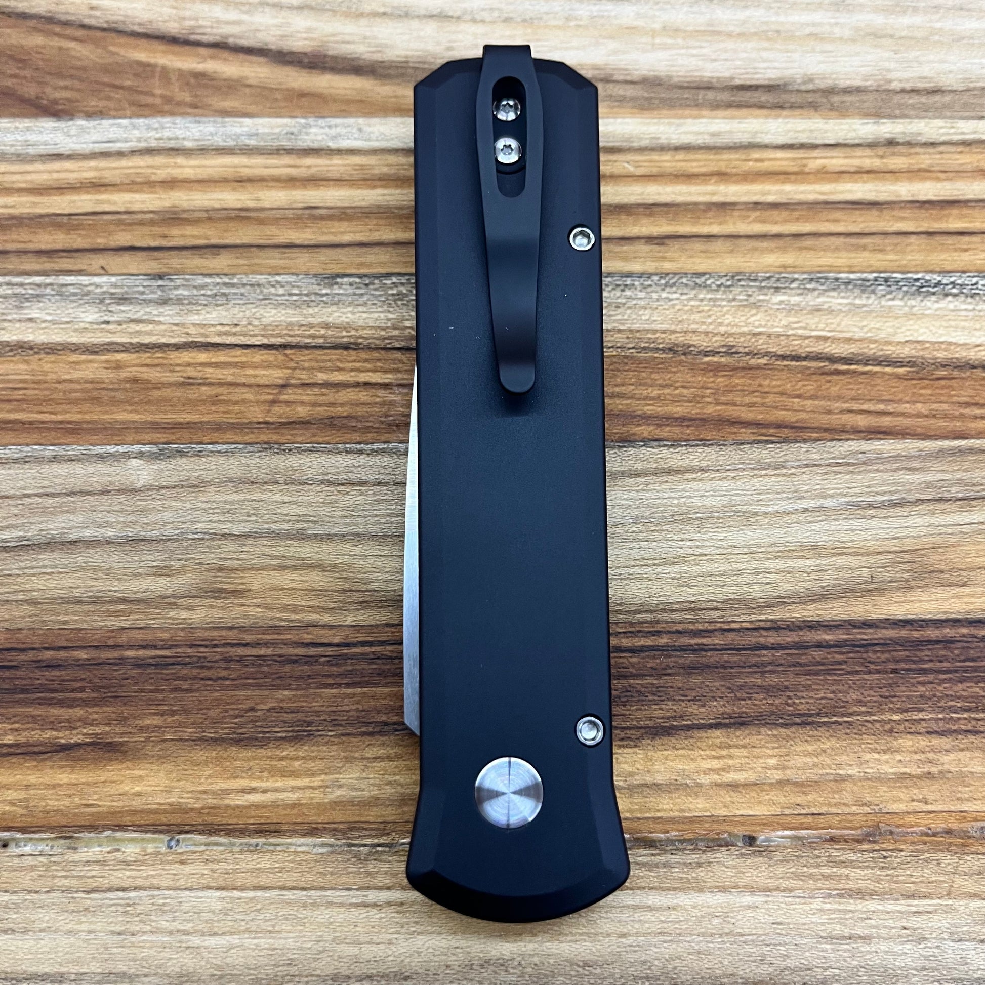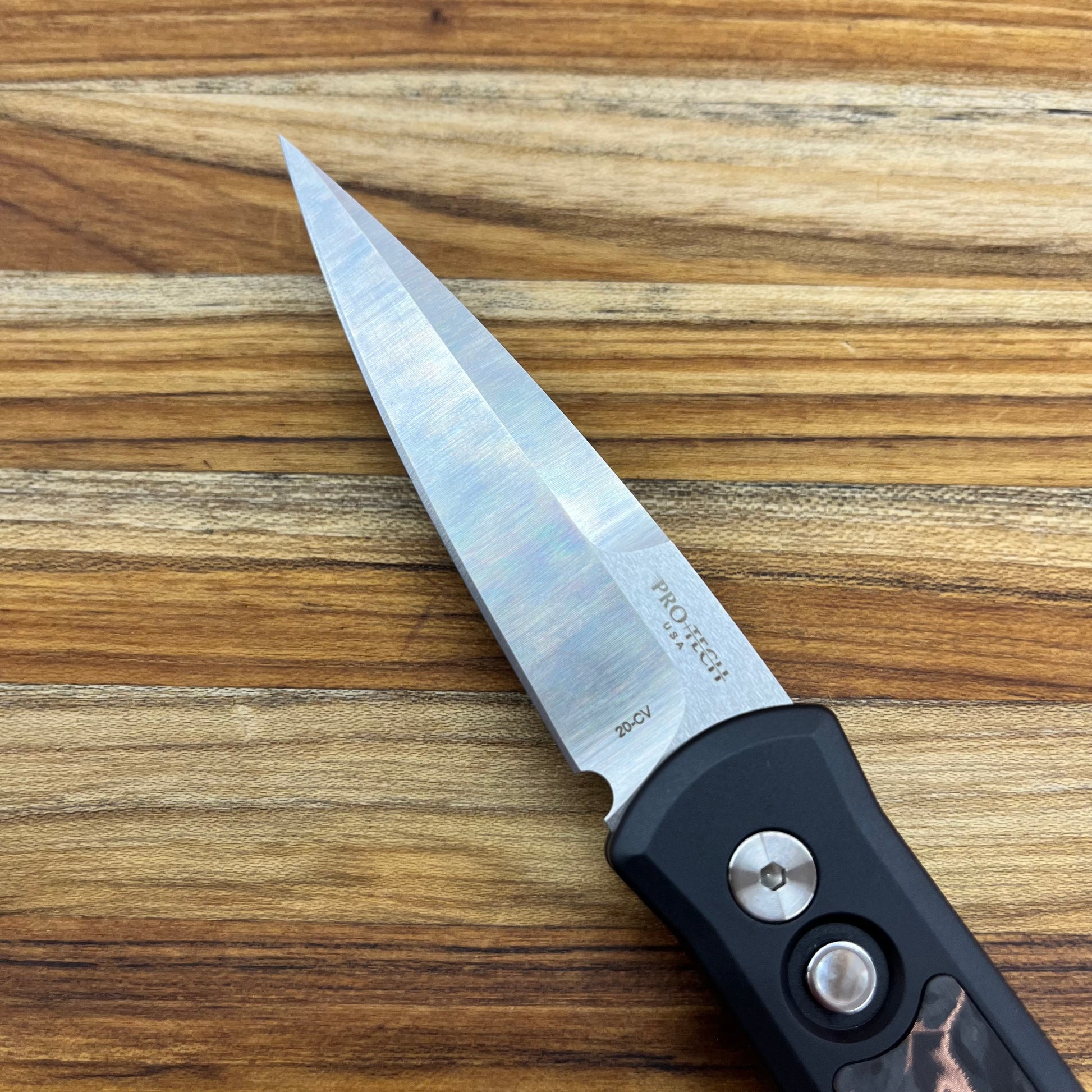 Pro-Tech Godson 3.15" Auto w/ Livewire Copper Carbon Fiber Inlay on Black Aluminum & Black Lip Pearl Button