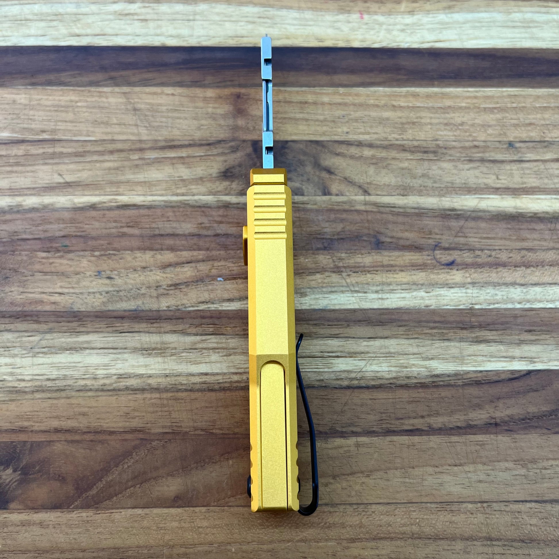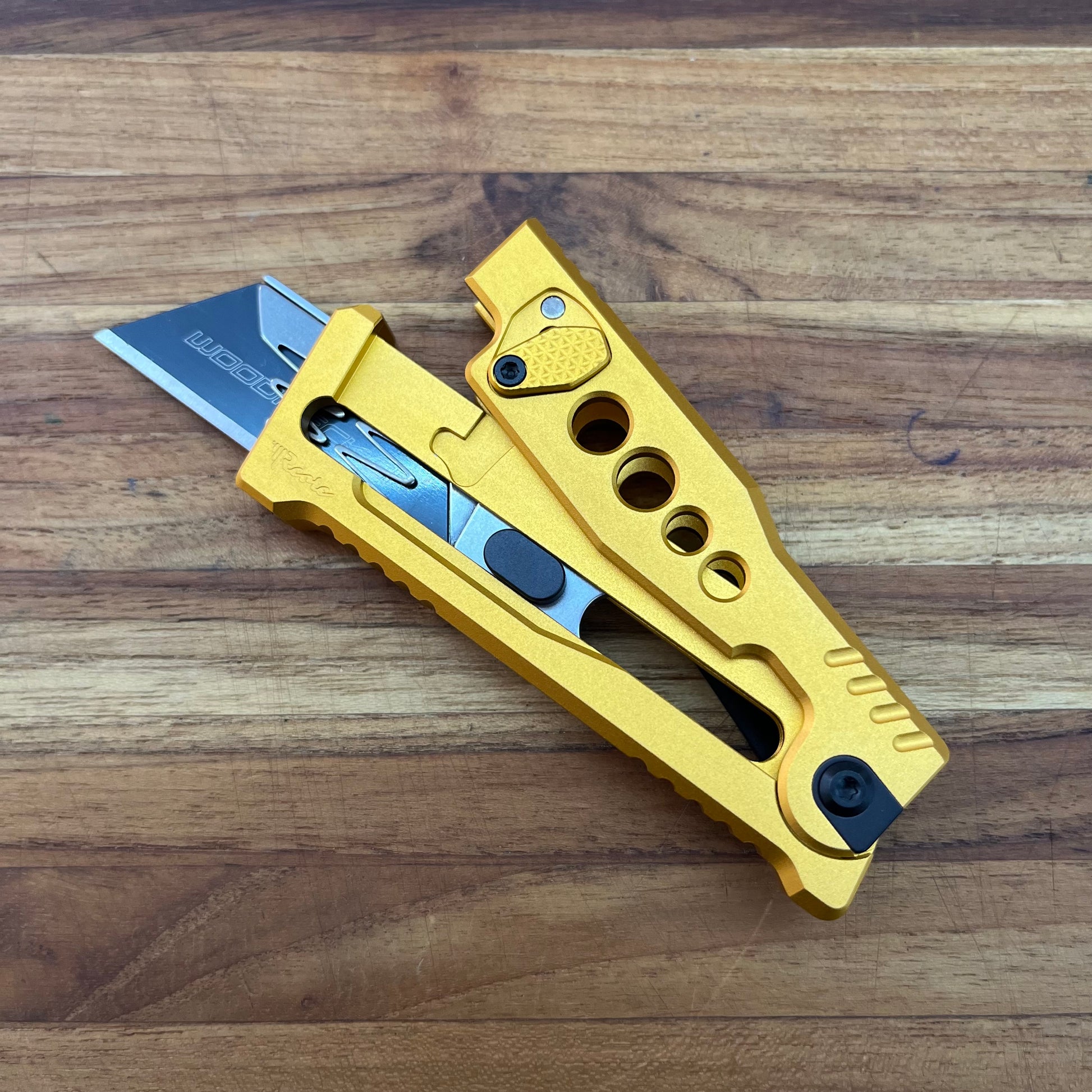 Reate Exo-U Gravity 2.5" Utility Knife w/ Gold Speedhole Handle