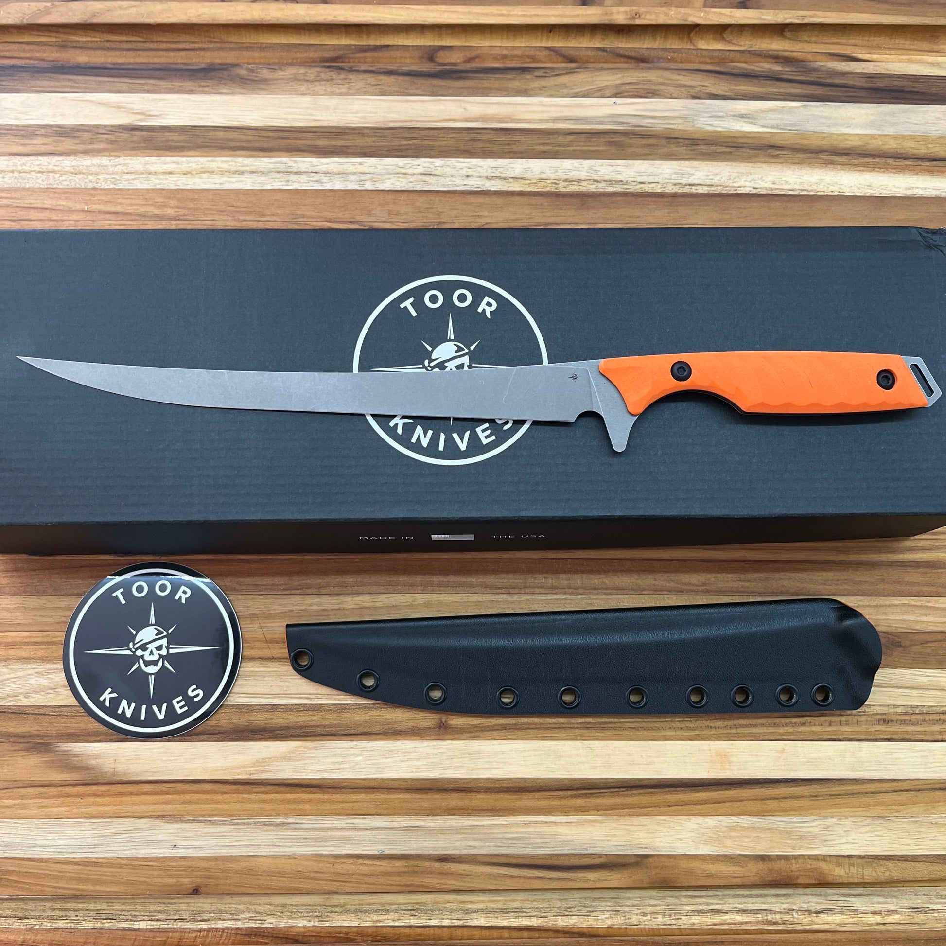 Toor Outdoor Avalon 9" Fillet Knife w/ Blaze Orange G10 Handle & Kydex Sheath