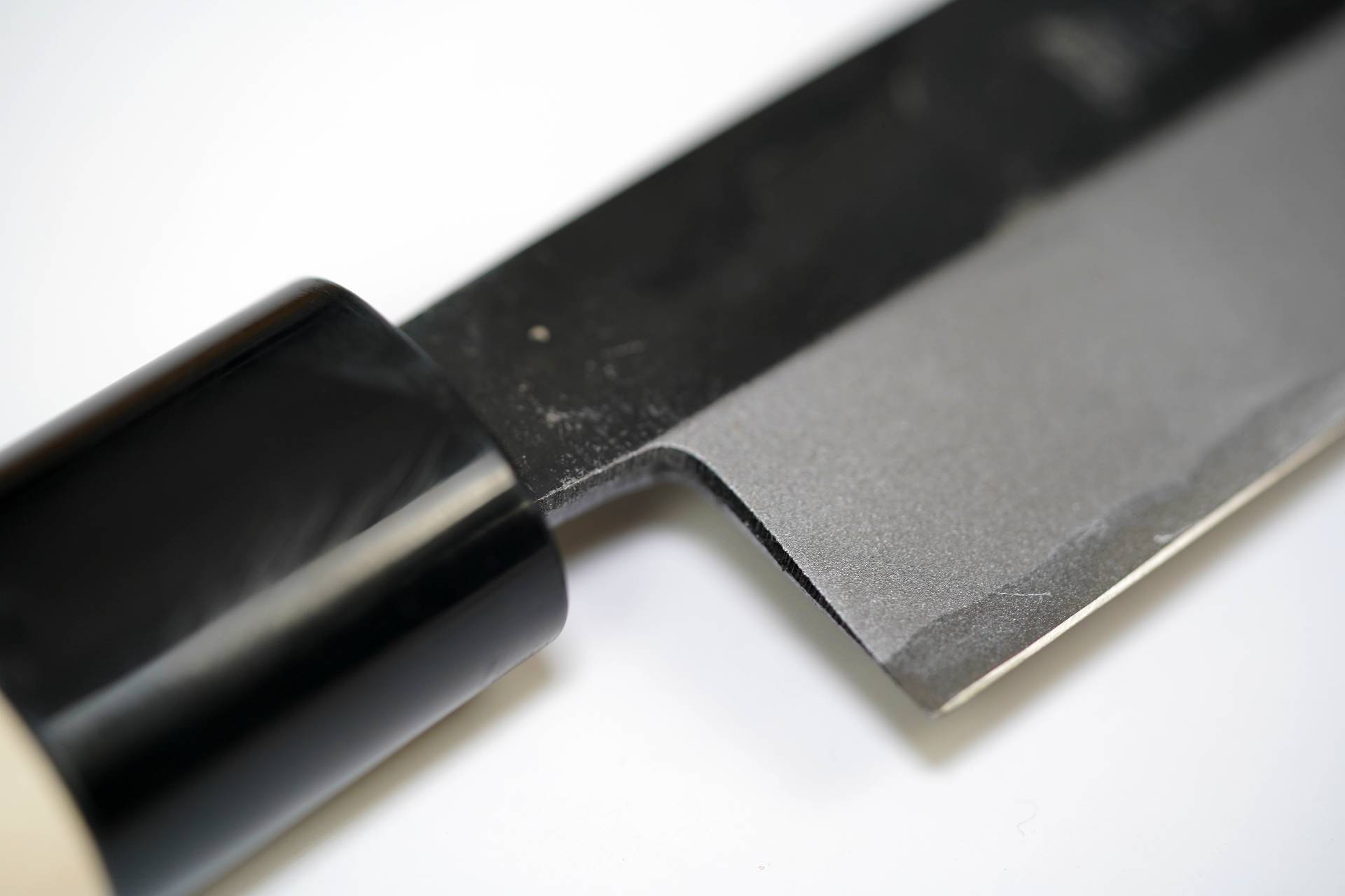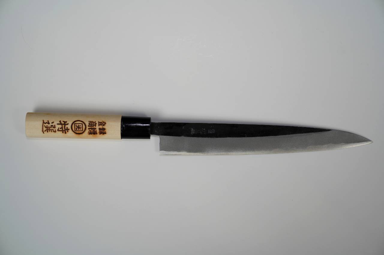 The Tosa knives are made of high carbon steel cutting edge, laminated to hammered iron. These knives are well known for their durability and long lasting cutting edge. They are also easy to sharpen. Please make sure to clean and wipe the moisture off the blade after each use to prevent rusts on the blade.