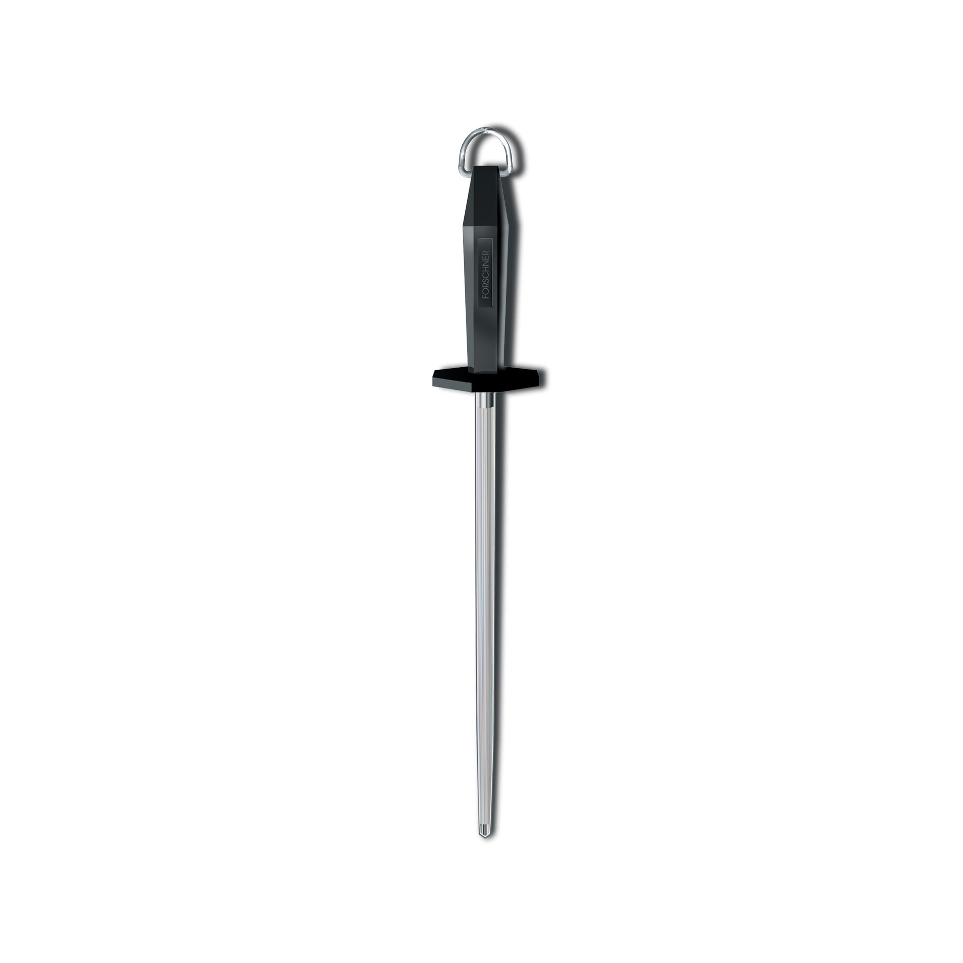 Victorinox offers a wide variety of honing rods (a.k.a. Steels) supplying professional and home chefs alike. Victorinox Steels range: from the finer cuts to the regular cuts, come in different lengths, typically between 10” and 14”, and come in both plastic and wood handles. The looped end is perfect for easy hanging when not in use.