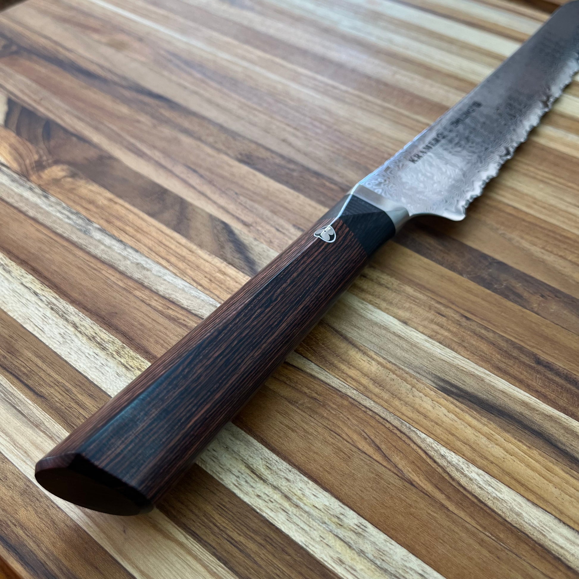 Utilizing unparalleled expertise, the combination of ZWILLING J.A. Henckels and Bob Kramer has resulted in the exceptional Kramer by ZWILLING Meiji knife series. This collaboration includes Kramer's distinctive etched ladder Damascus pattern, providing a durable exterior. Featuring a potent core of FC61 fine carbide stainless steel safeguarded by 100 layers of nickel and stainless steel, these knives are both durable and sharp. The charcoal Pakkawood handles boast a complex curvature designed to mirror the palm, ensuring a secure and comfortable grip. Adorned with a decorative center pin crafted by hand in Kramer's Washington workshop, these knives are not only exquisite to look at, but also built to last a lifetime. With 287 years of ZWILLING engineering prowess, 19 years of forging experience from Kramer, and 7 centuries of traditional Japanese craftsmanship, the Kramer by ZWILLING Meiji knives are truly unmatched in quality and longevity.
